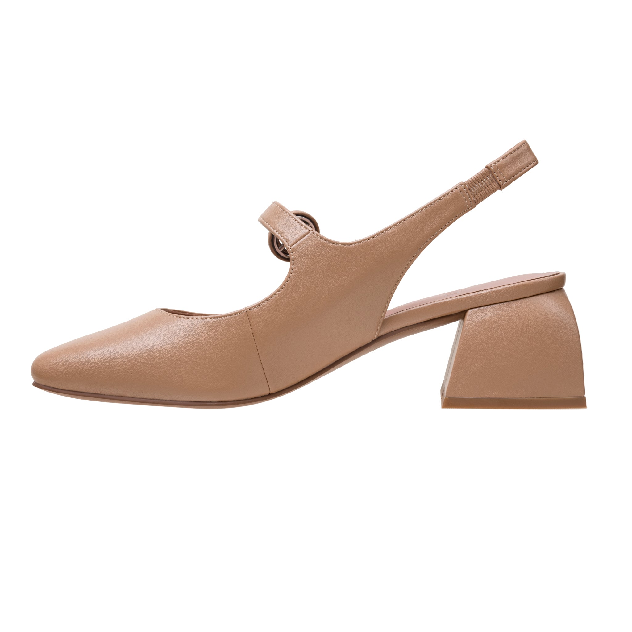 On-Trend Slingback Mary Jane Pumps With Modern Lines And A Walkable Flared Block Heel.