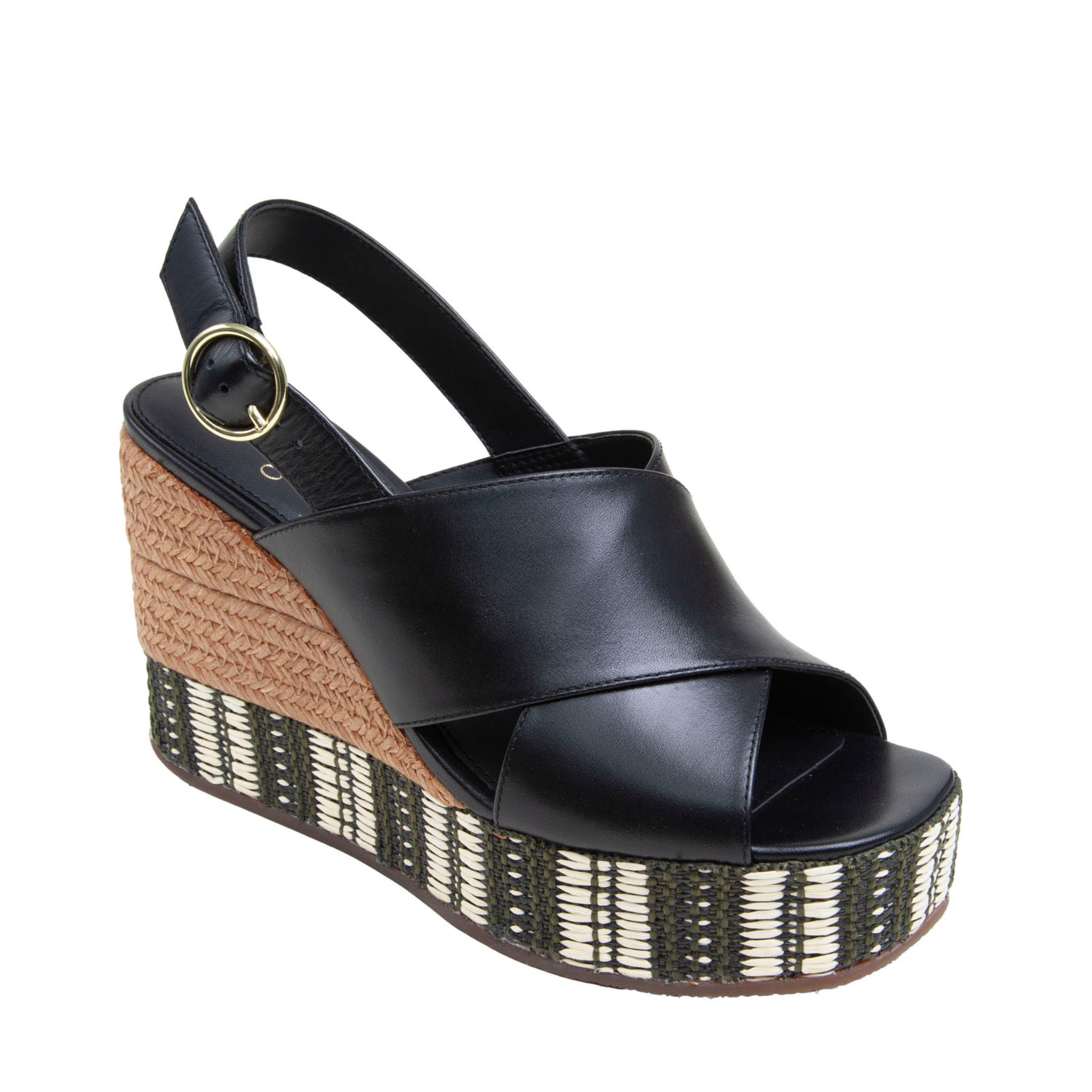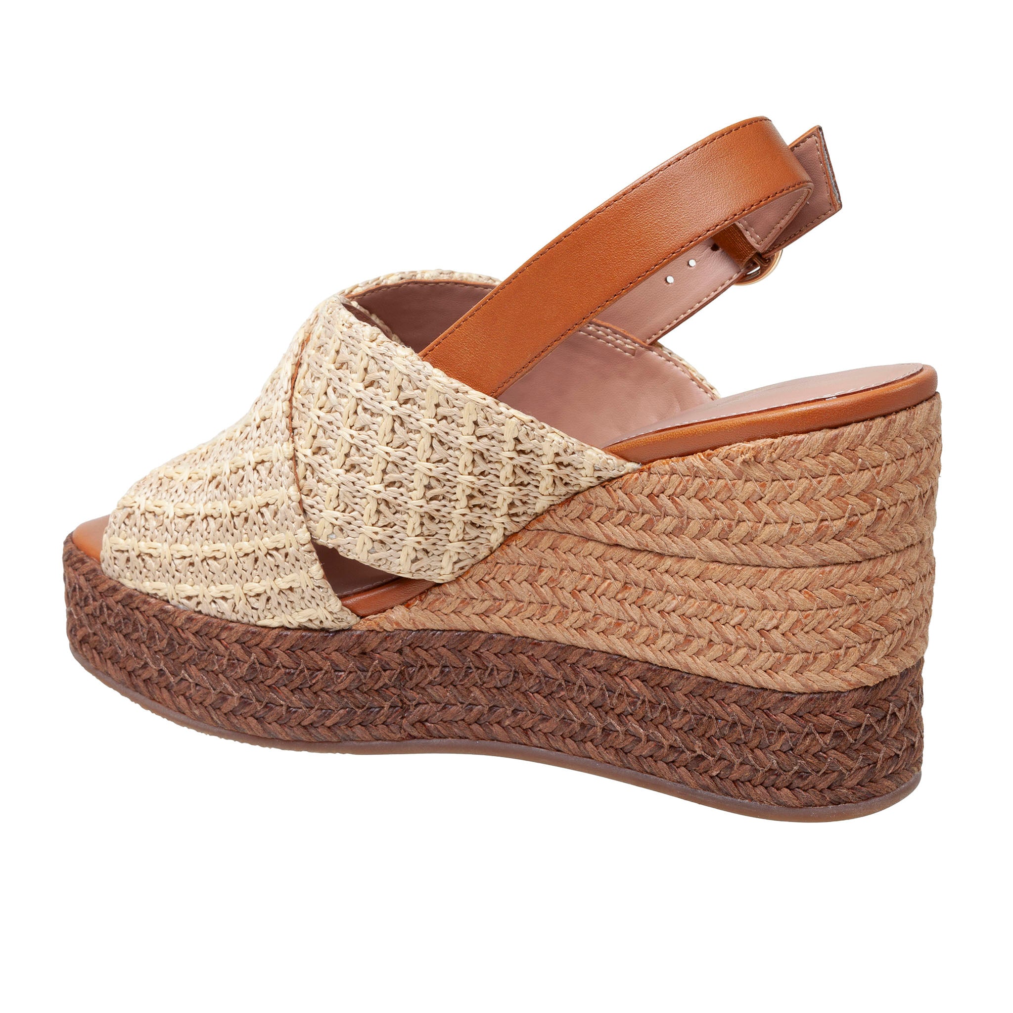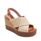 Meet VALERY | Stand tall in this pair of trendy, elevated mixed raffia and leather slingback wedges.