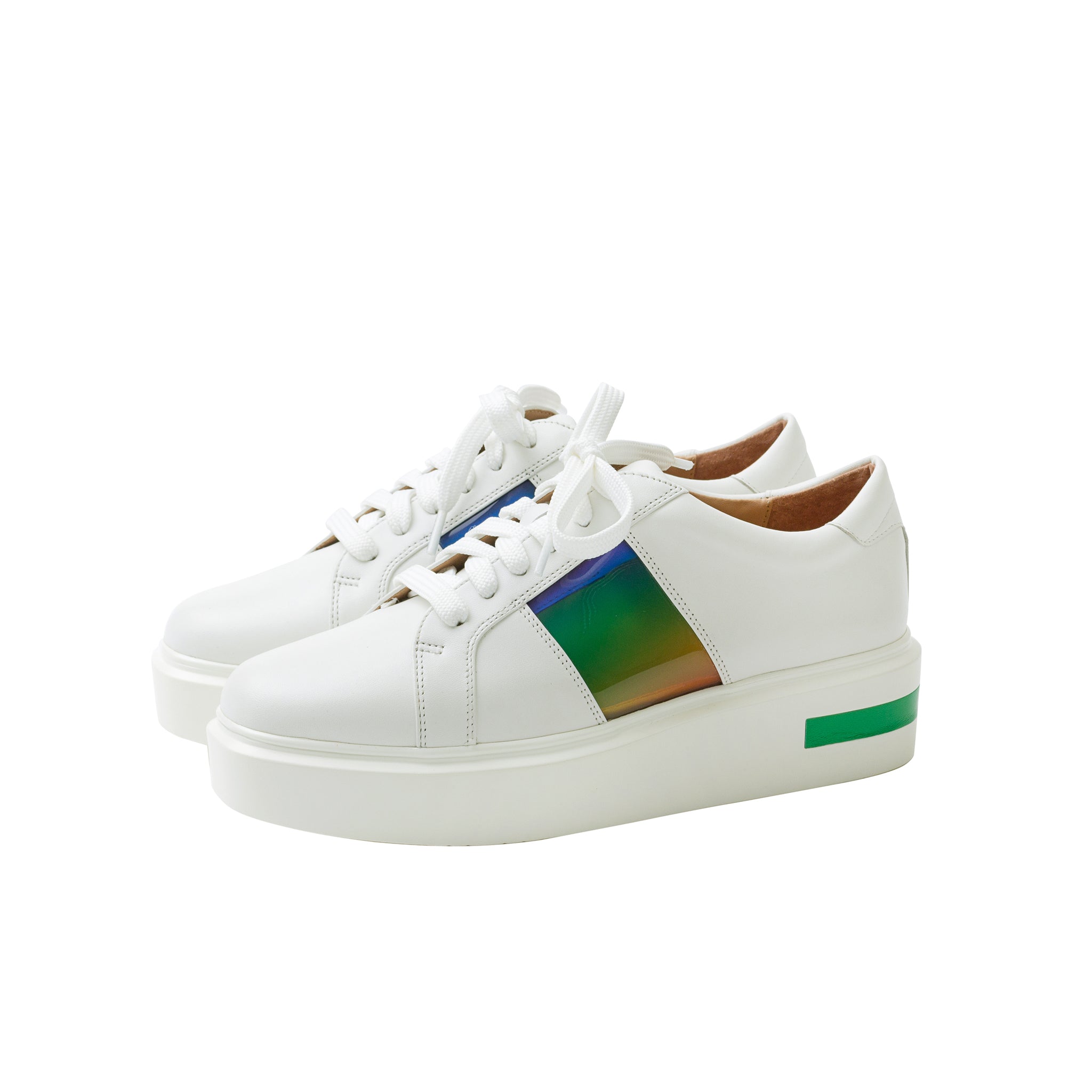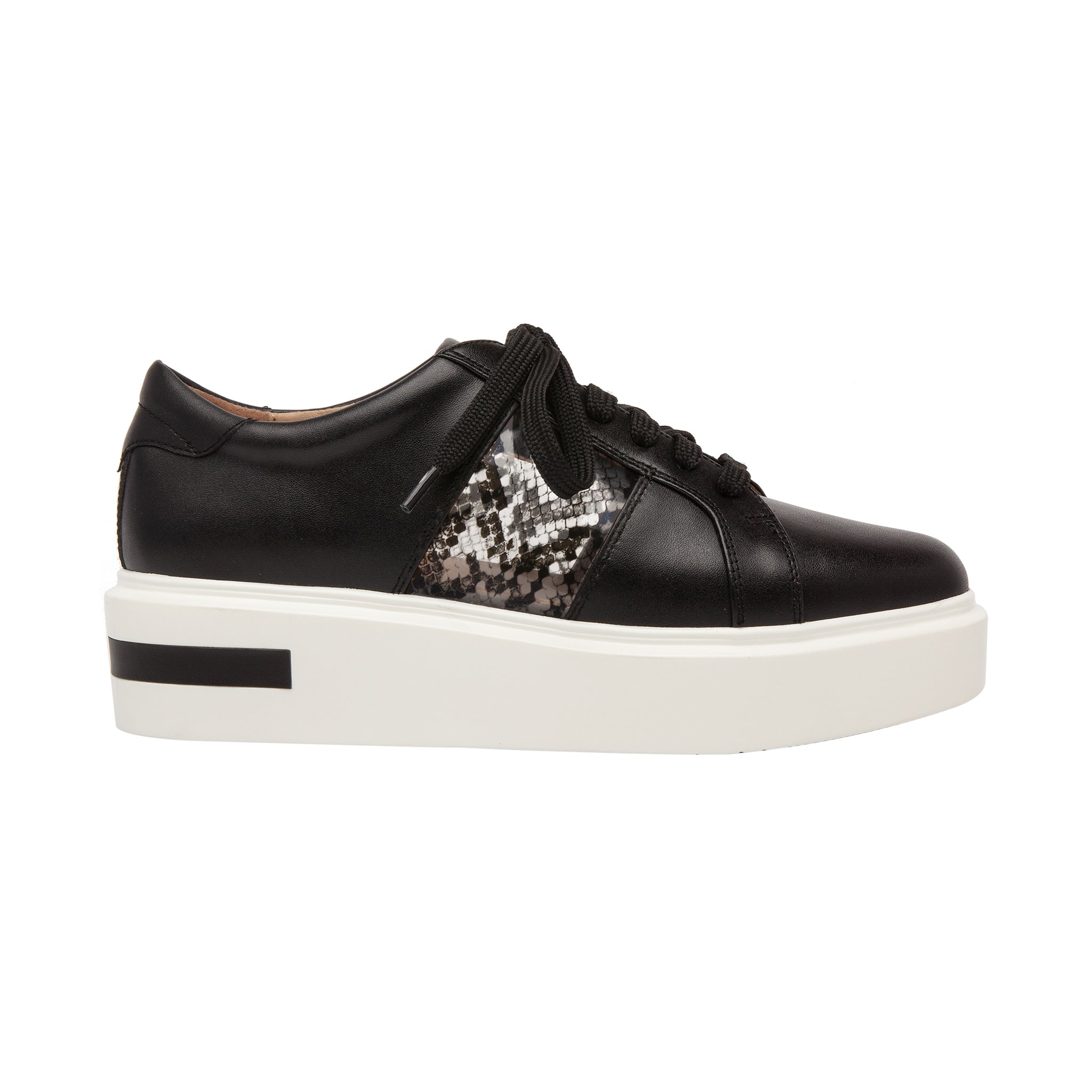 Meet KARIS | A fresh take on a lace-up leather platform sneakers with vinyl sport stripe