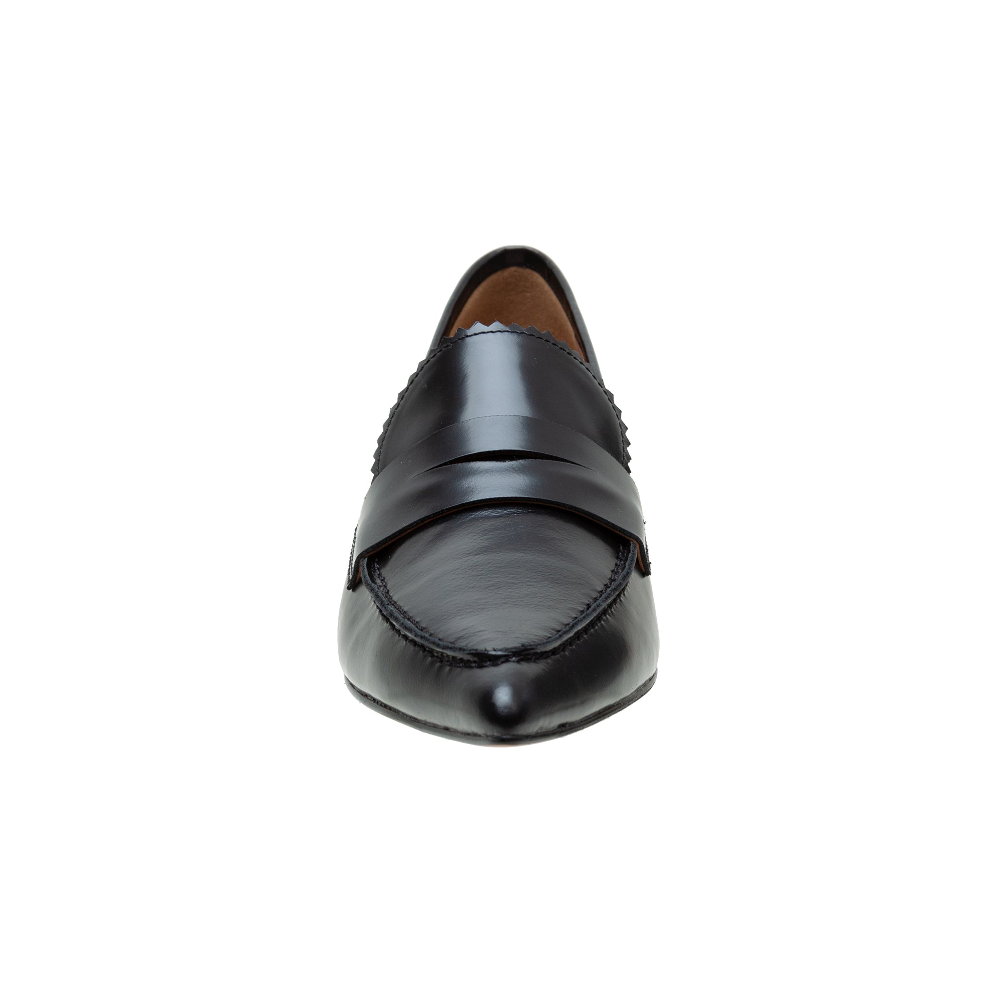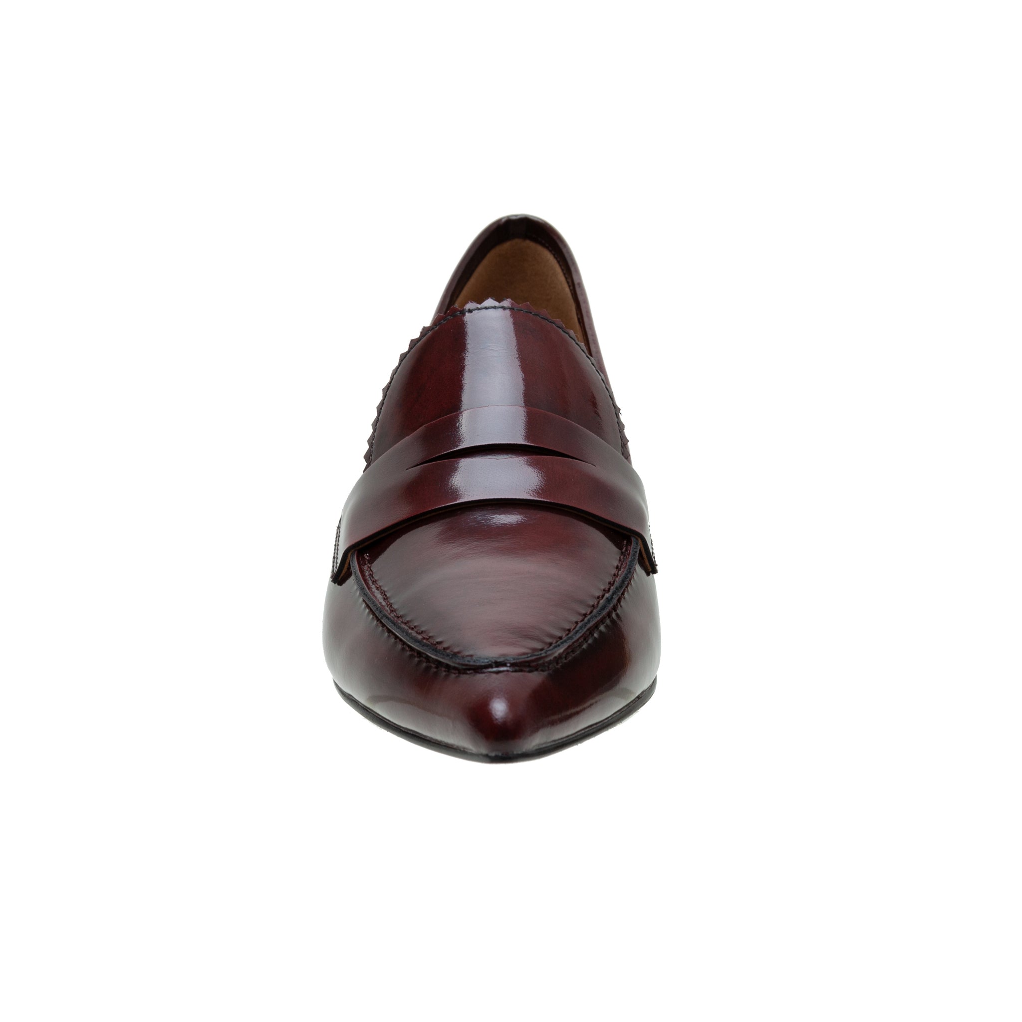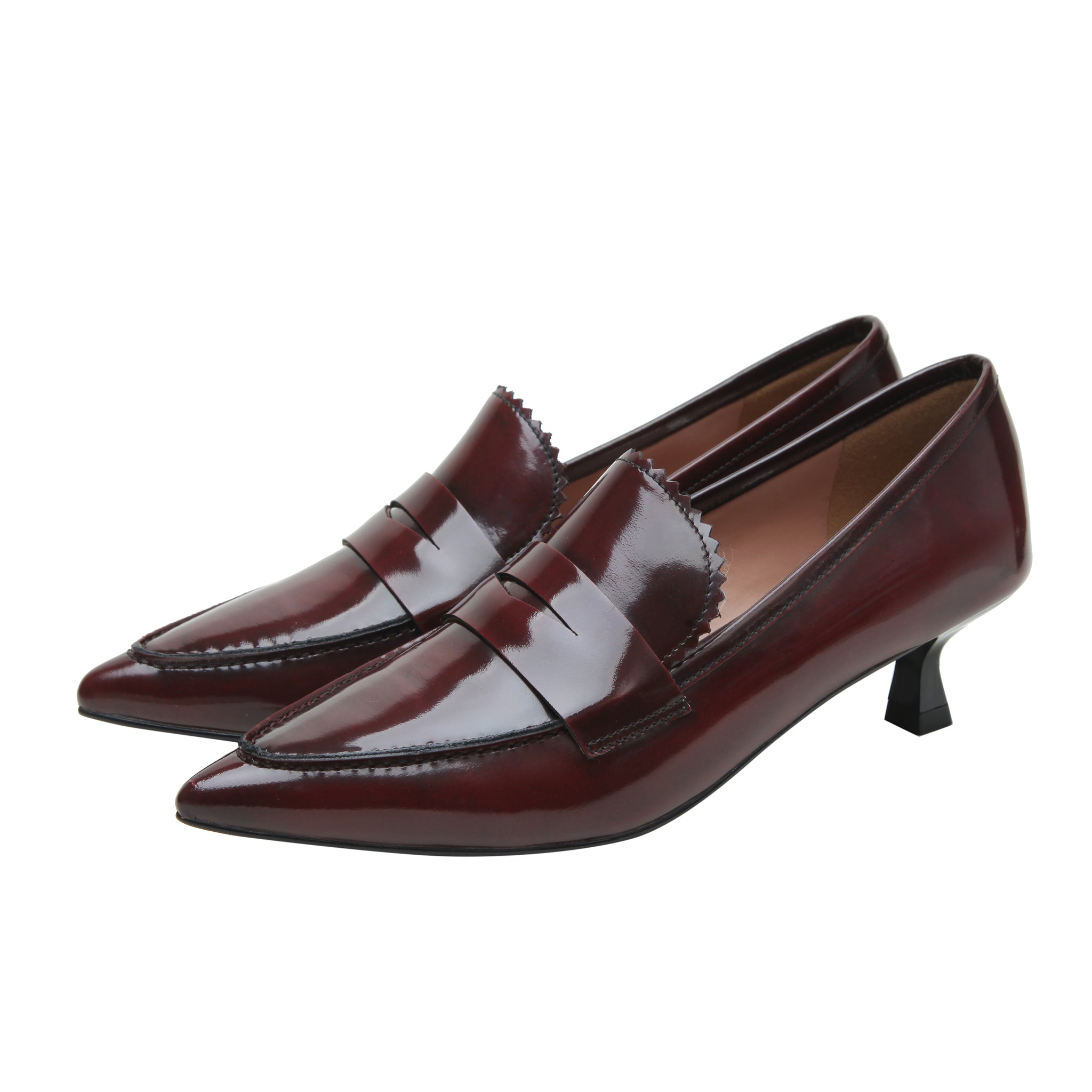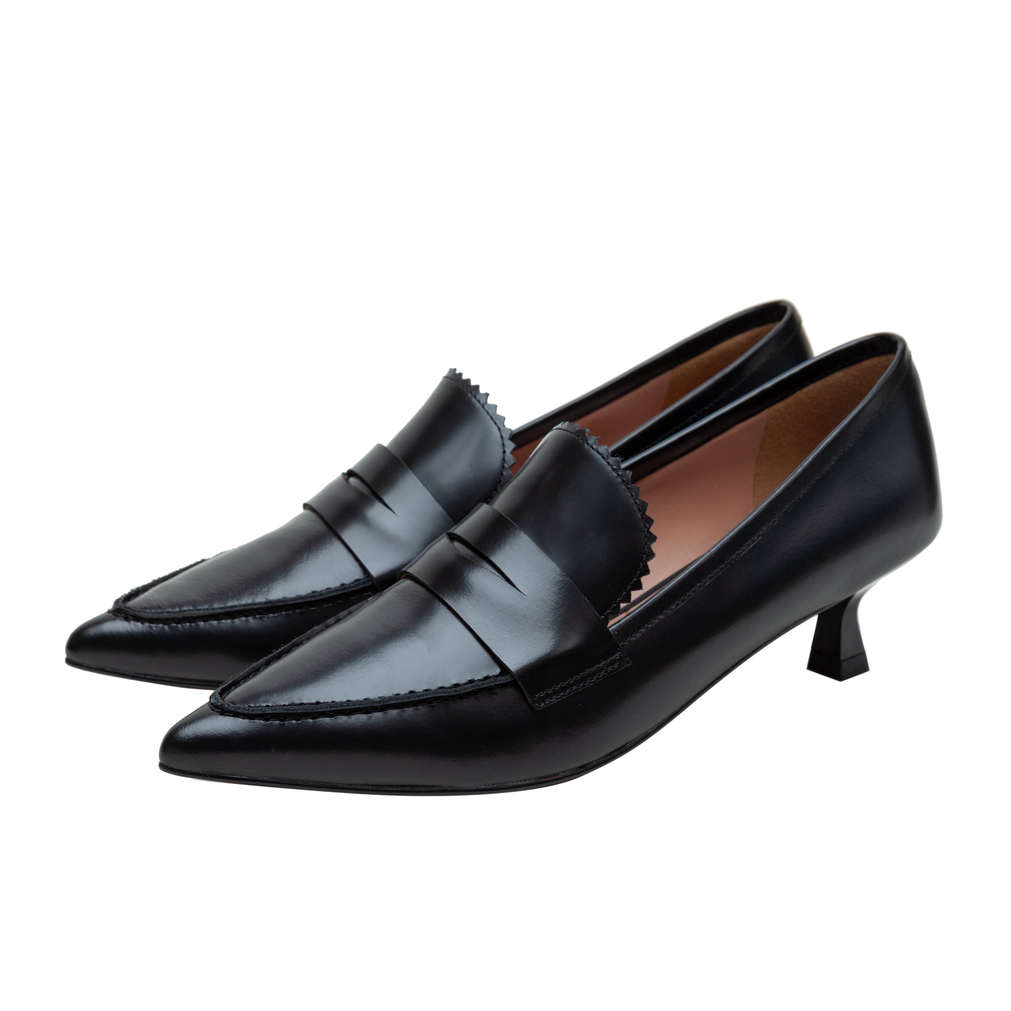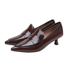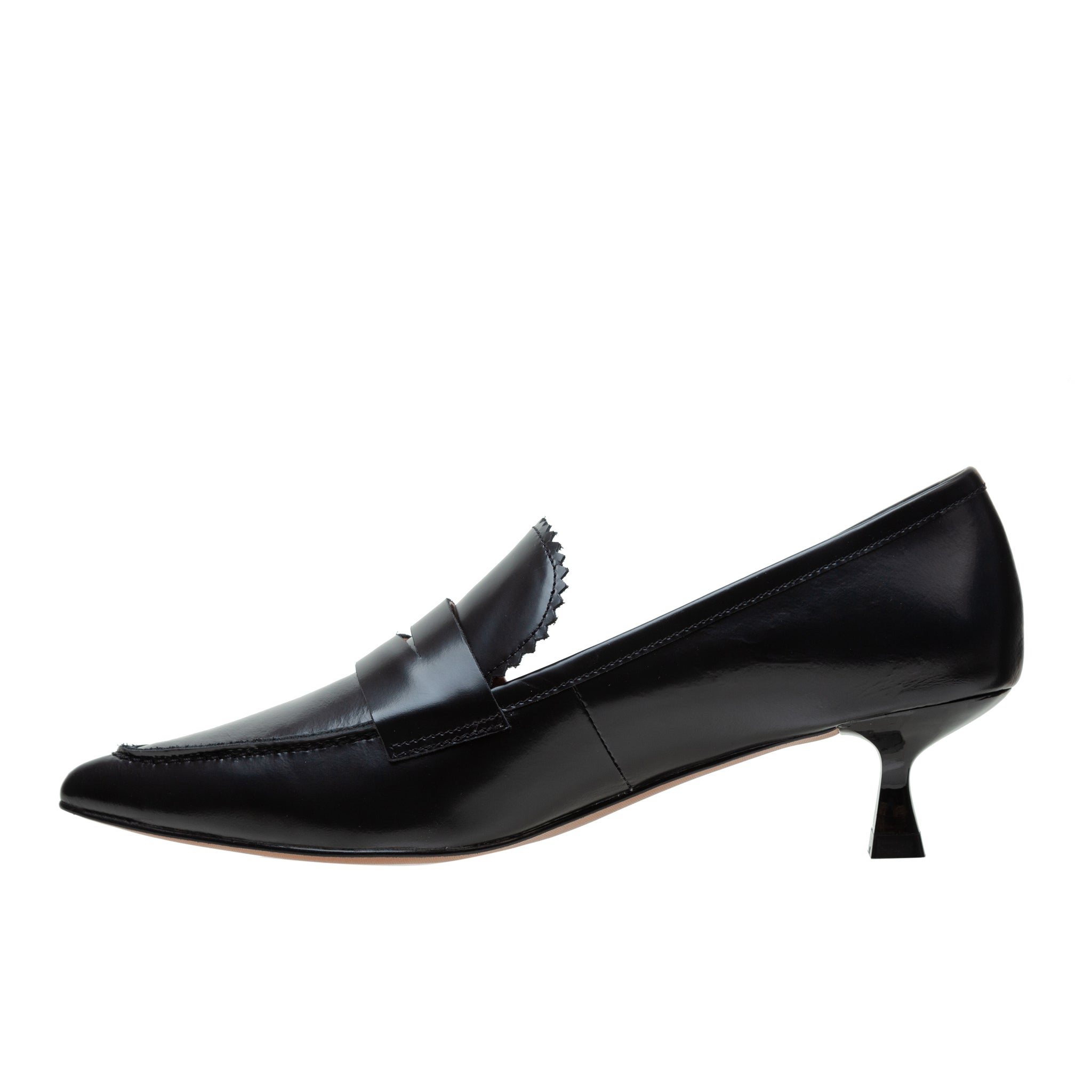 CALLISTO | Pointed Toe Low Heel Leather Penny Loafer Pumps