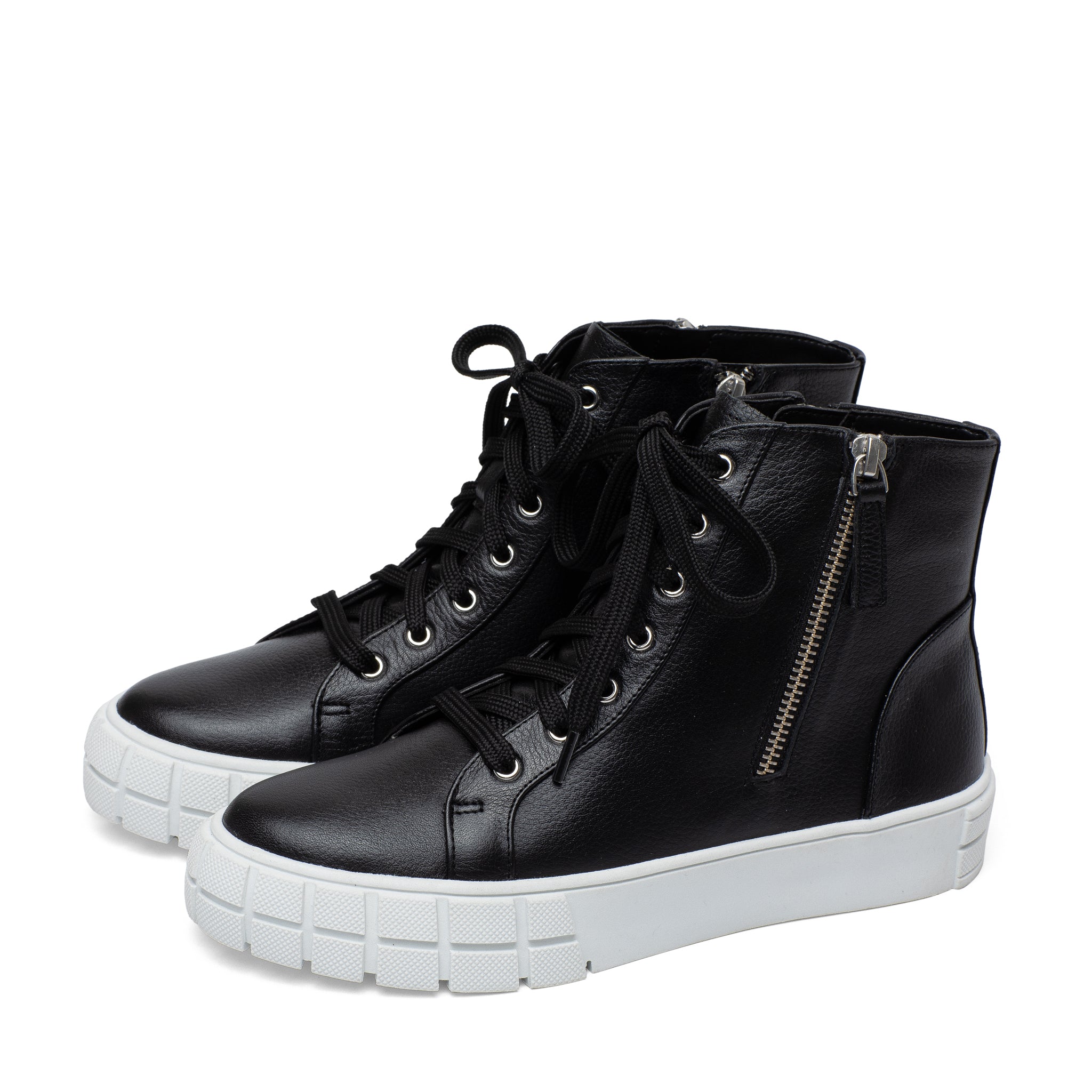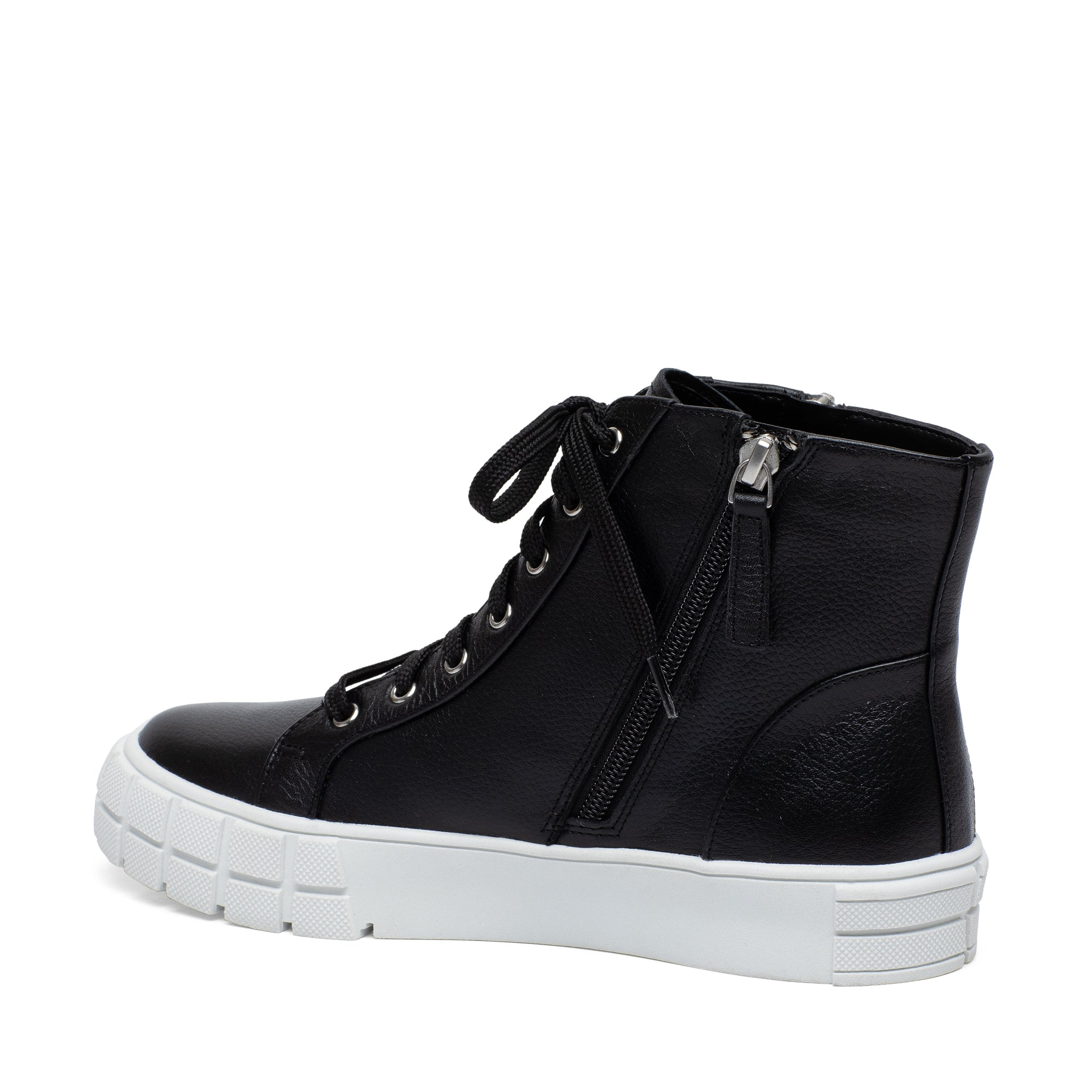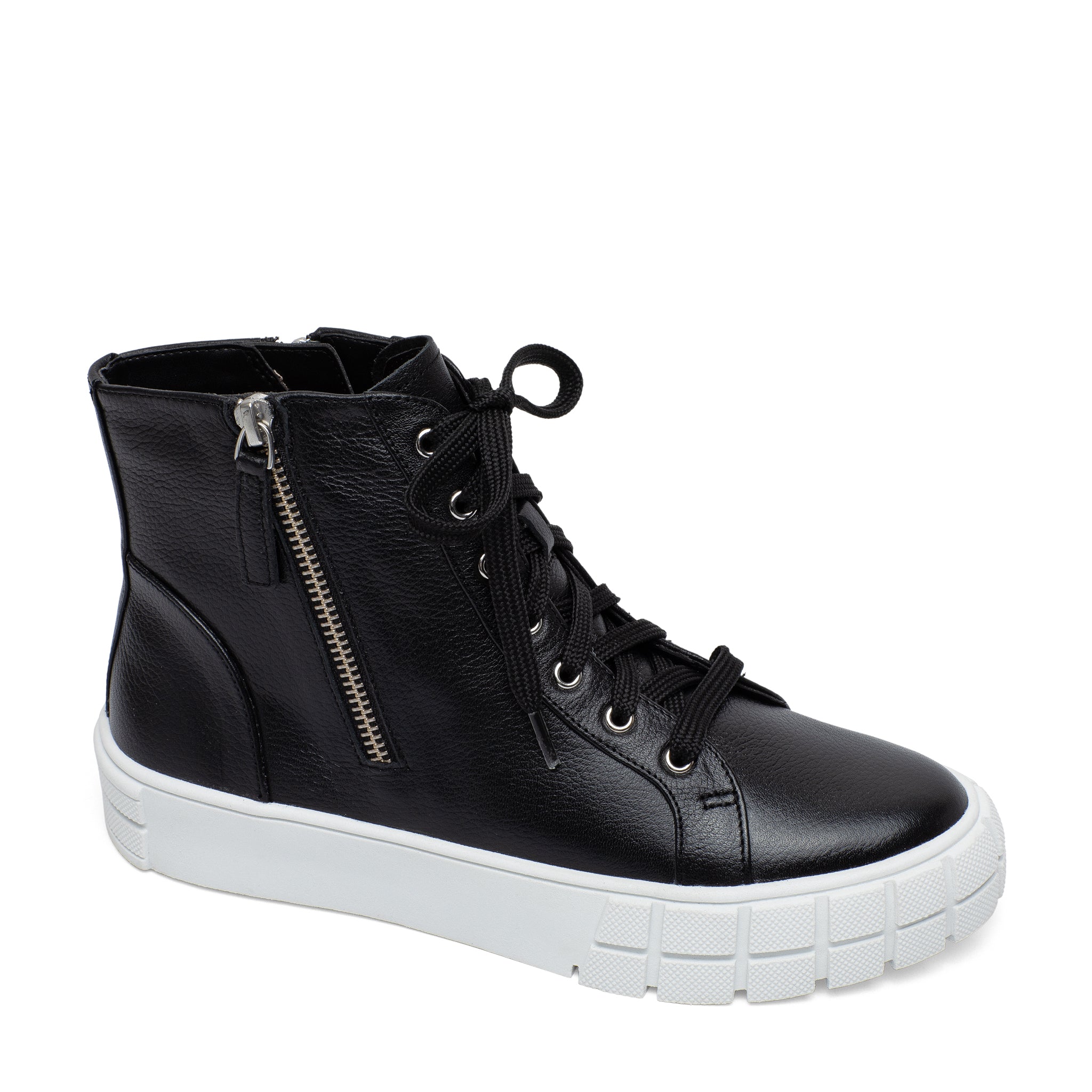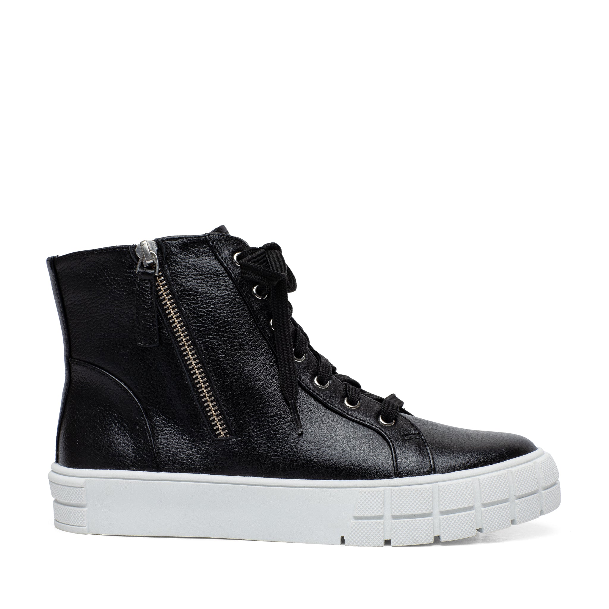Meet GIO | Sporty and chic designer leather high top sneakers with grippy stylized rubber soles and stand-out metal zipper detail