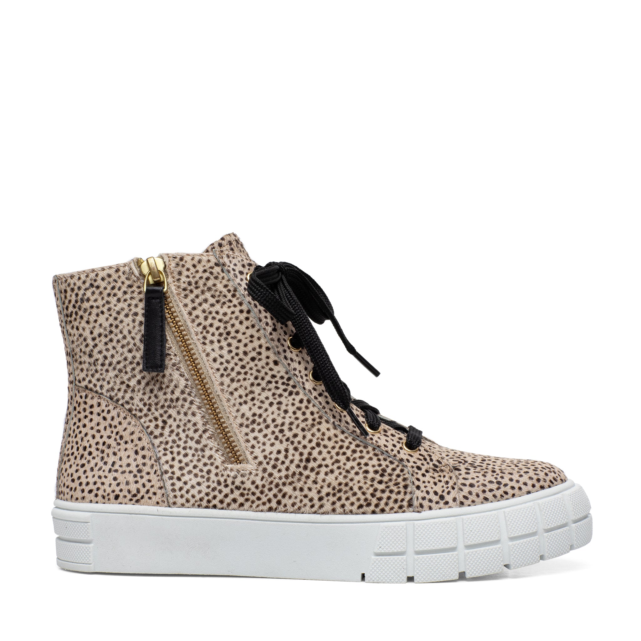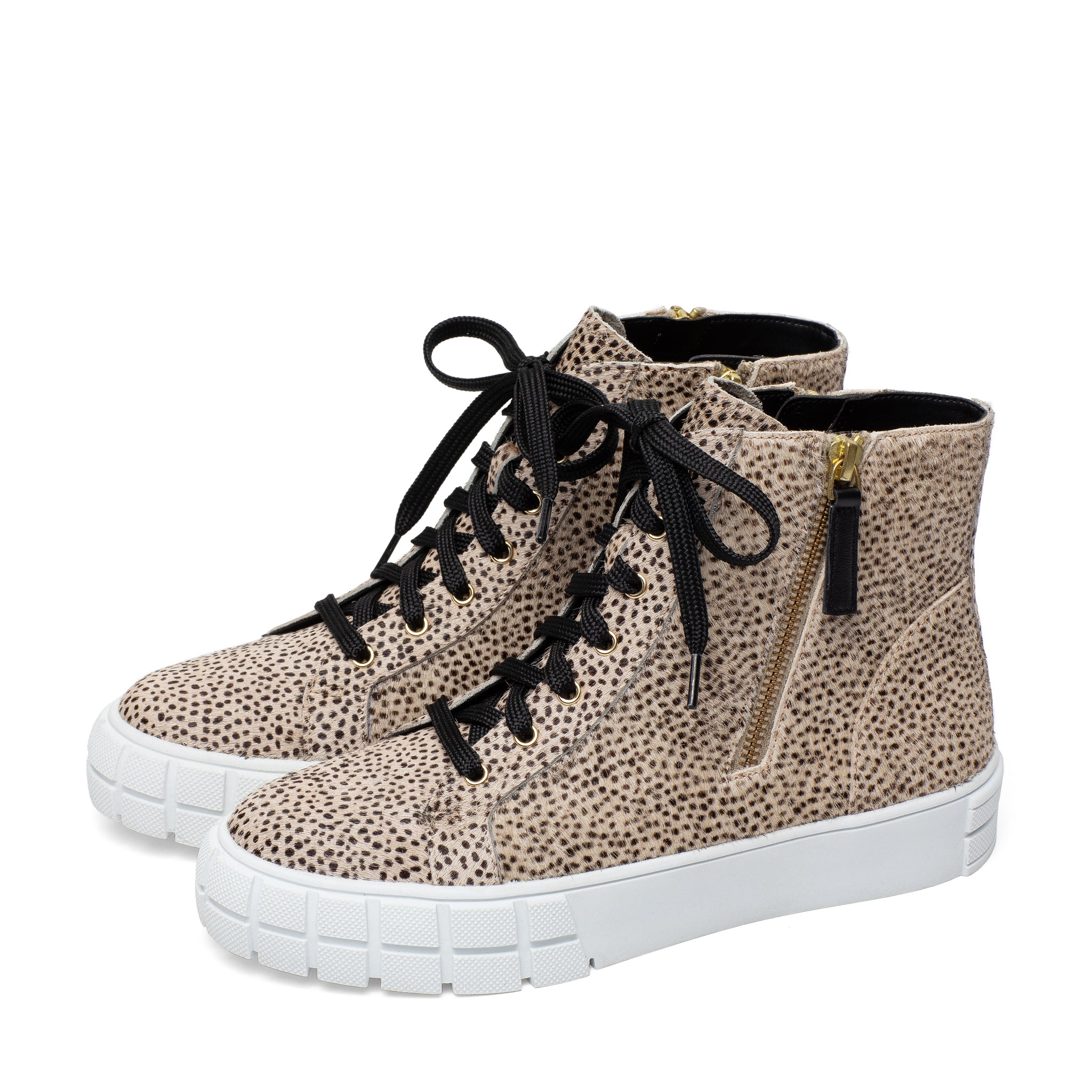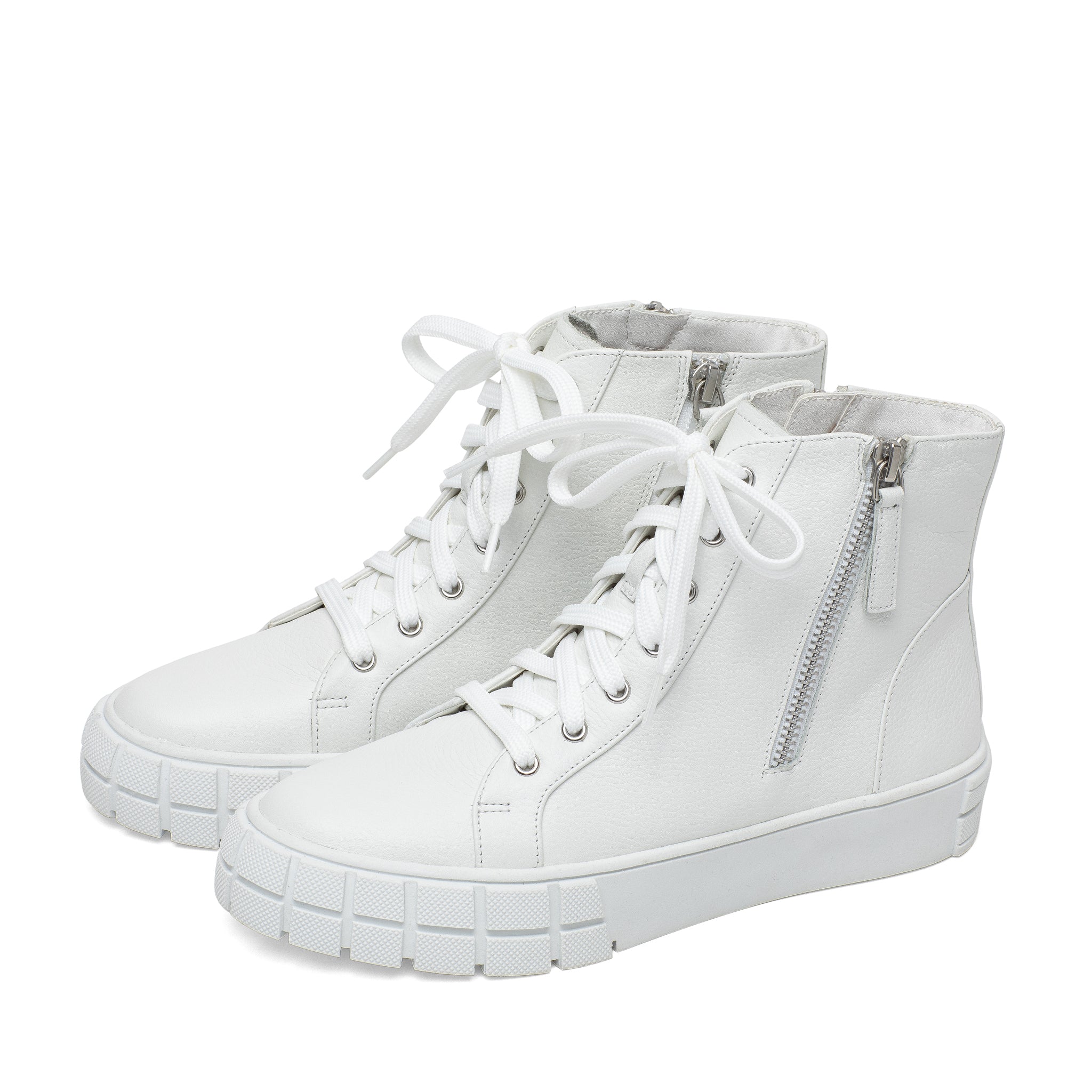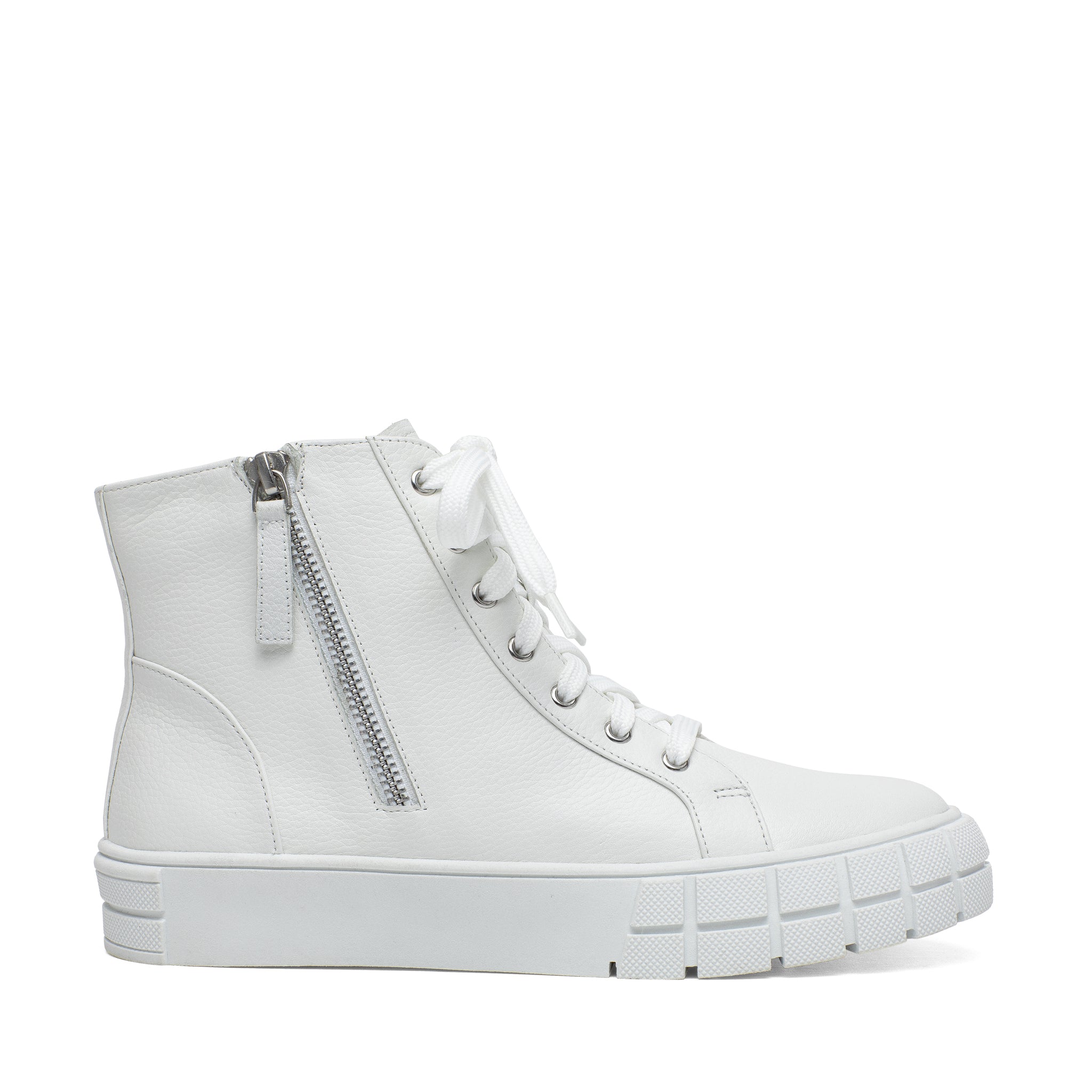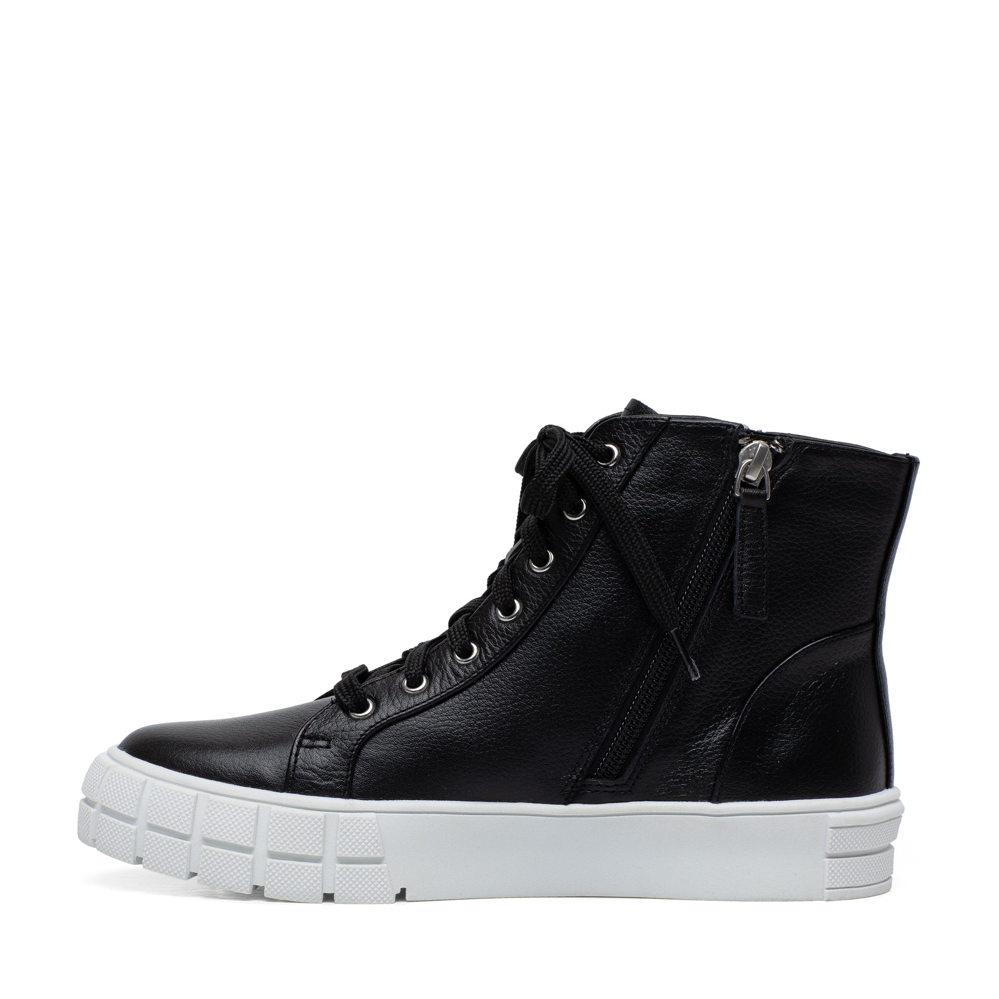 Meet GIO | Sporty and chic designer leather high top sneakers with grippy stylized rubber soles and stand-out metal zipper detail