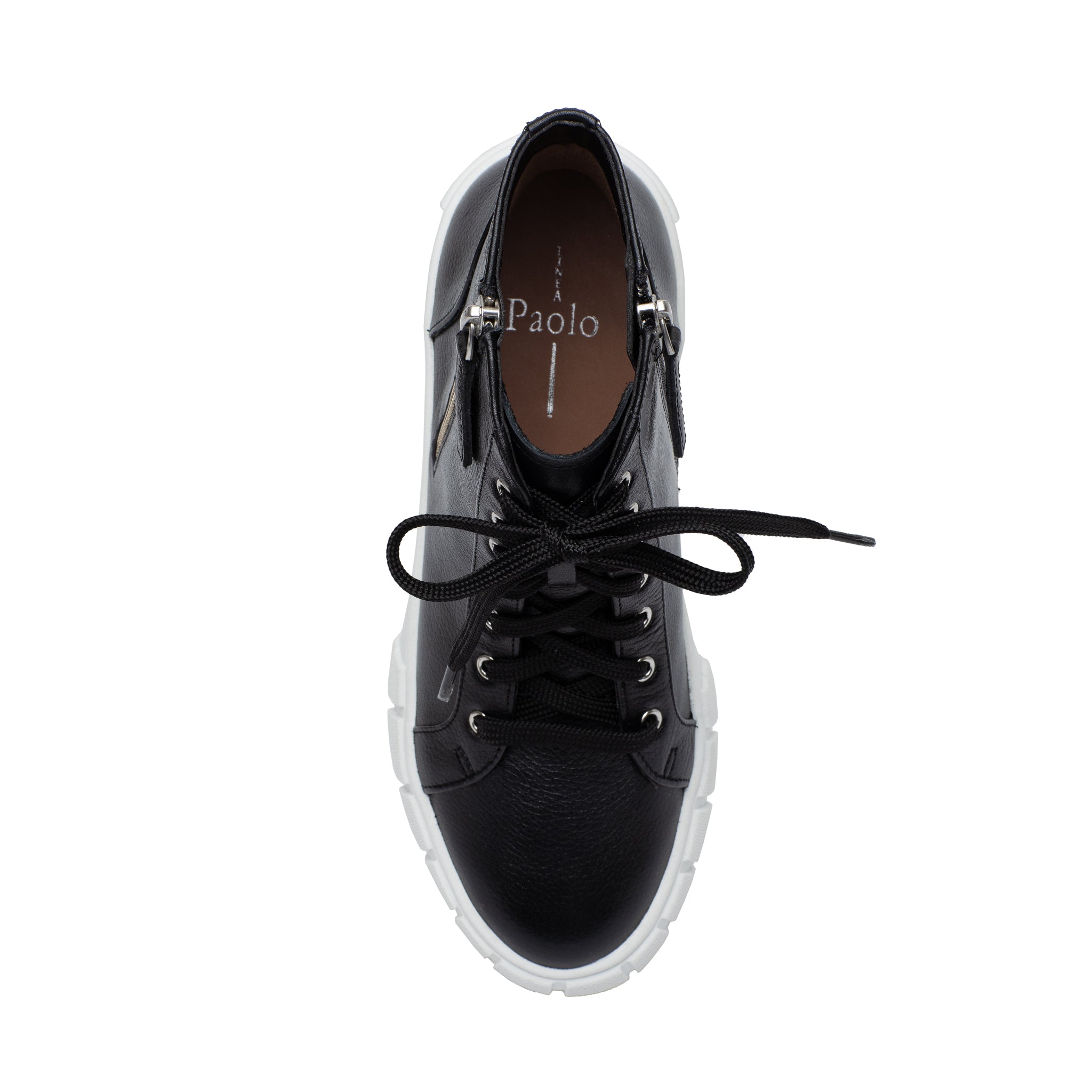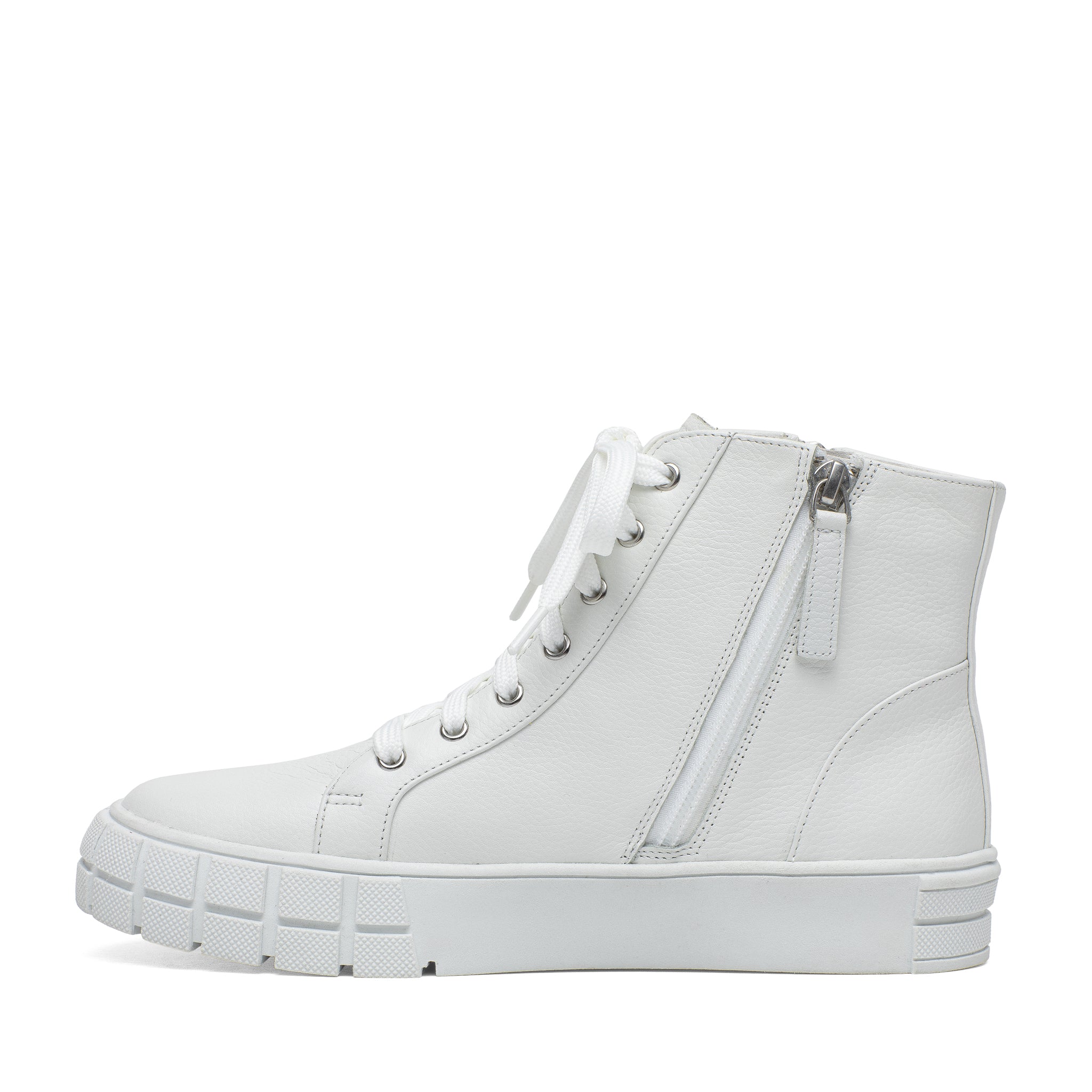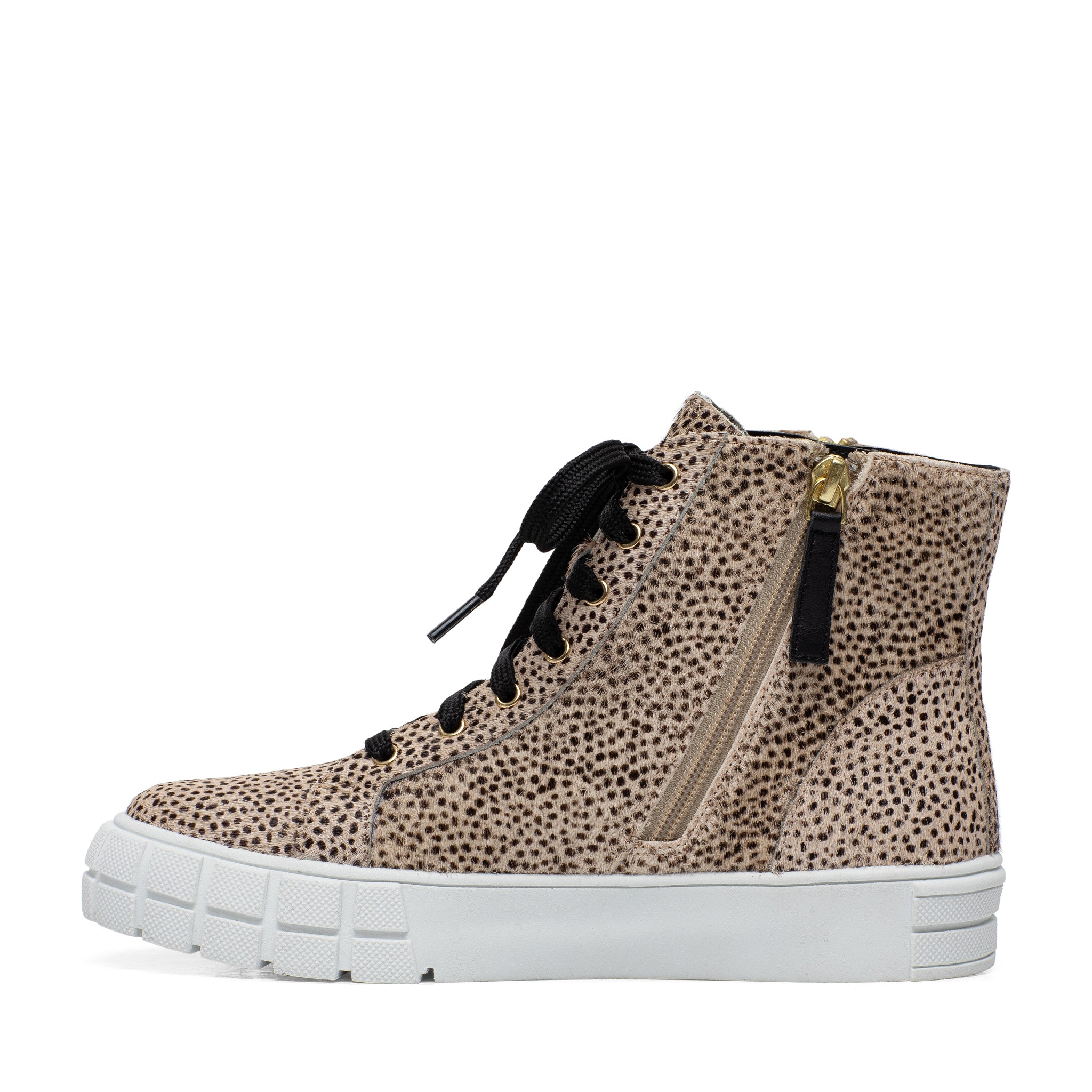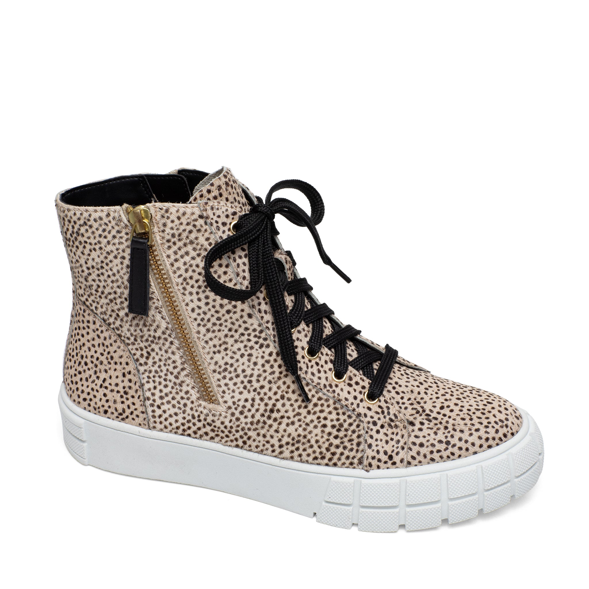 Meet GIO | Sporty and chic designer leather high top sneakers with grippy stylized rubber soles and stand-out metal zipper detail