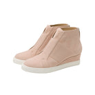 Meet AMBER | An athluxe inspired elastic gore low heel sneaker wedge bootie done up in supple leather and suede