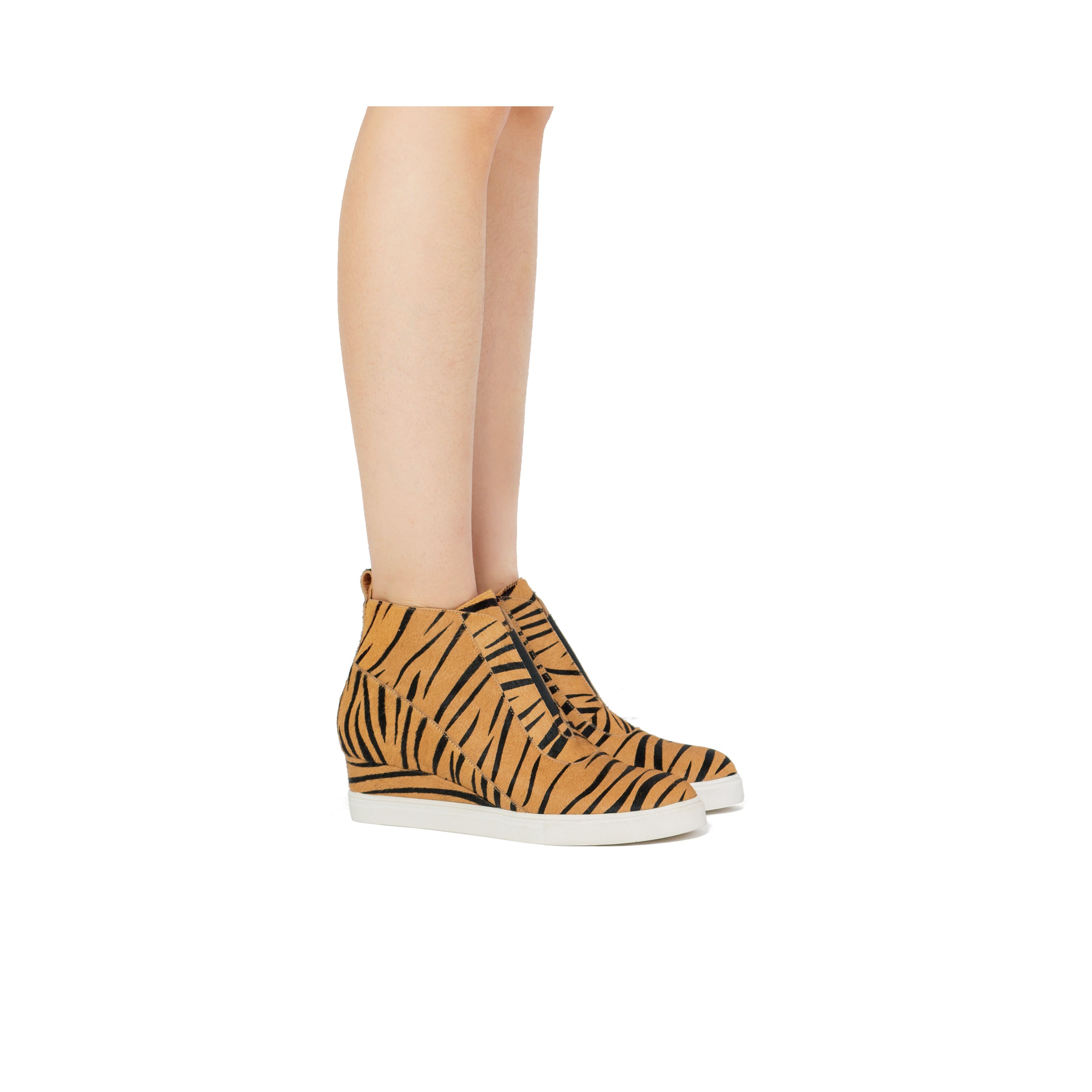 Meet ANNA III | The sporty low heel version of our best selling designer wedge sneaker bootie done up in luxe animal print hair calf