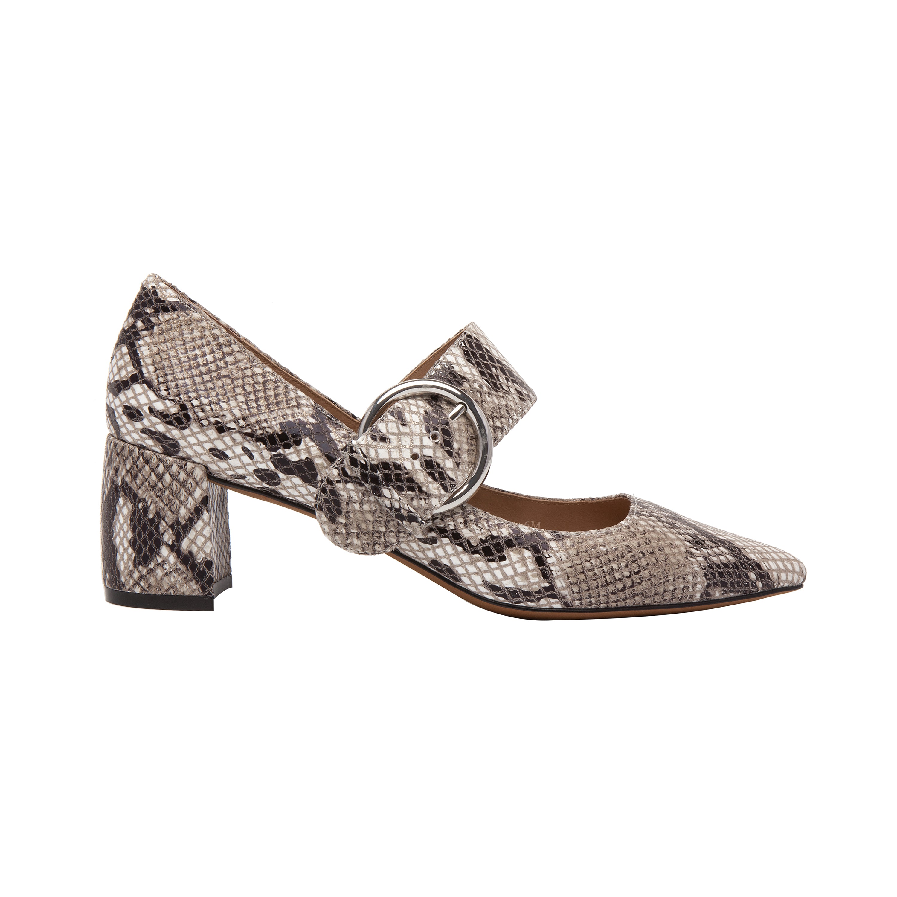 Meet BURTON II | An essential update on a pointy toe Mary Jane Pump with an oversized round buckle and lifted by a chunky mid height heel