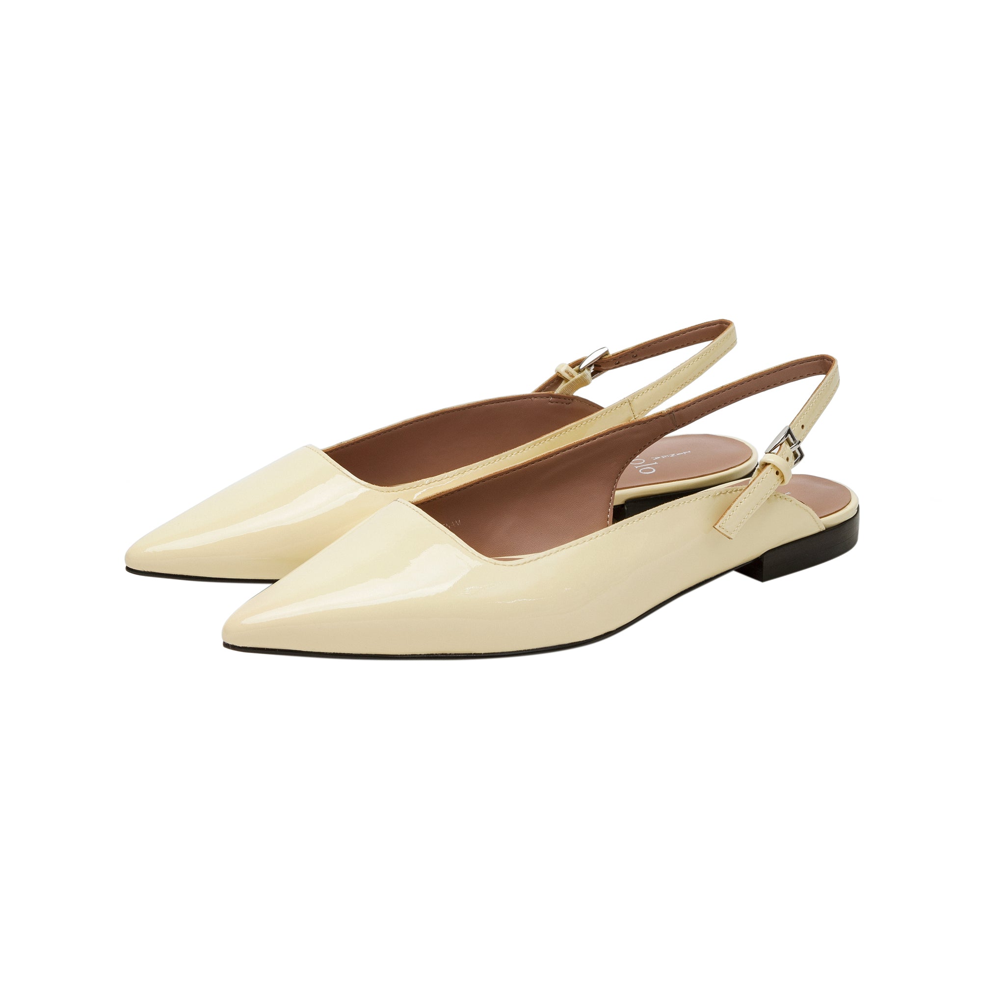 Meet CAIA | A Chic Versatile Pointy Toe Stack Heel Buckle Slingback In Supple Leather Or Glossy Patent