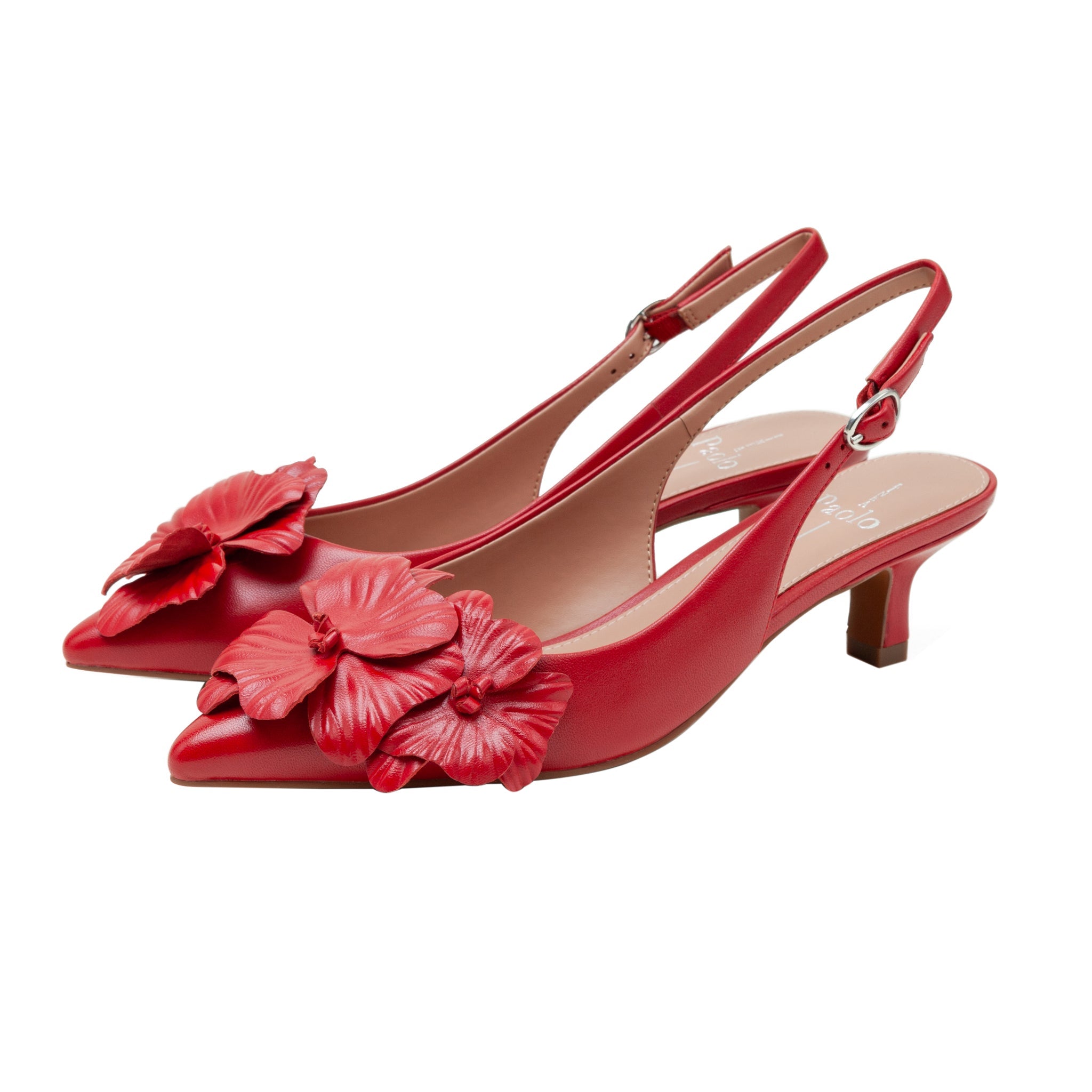 CASTIEL | Floral Kitten Heel Slingback Pumps