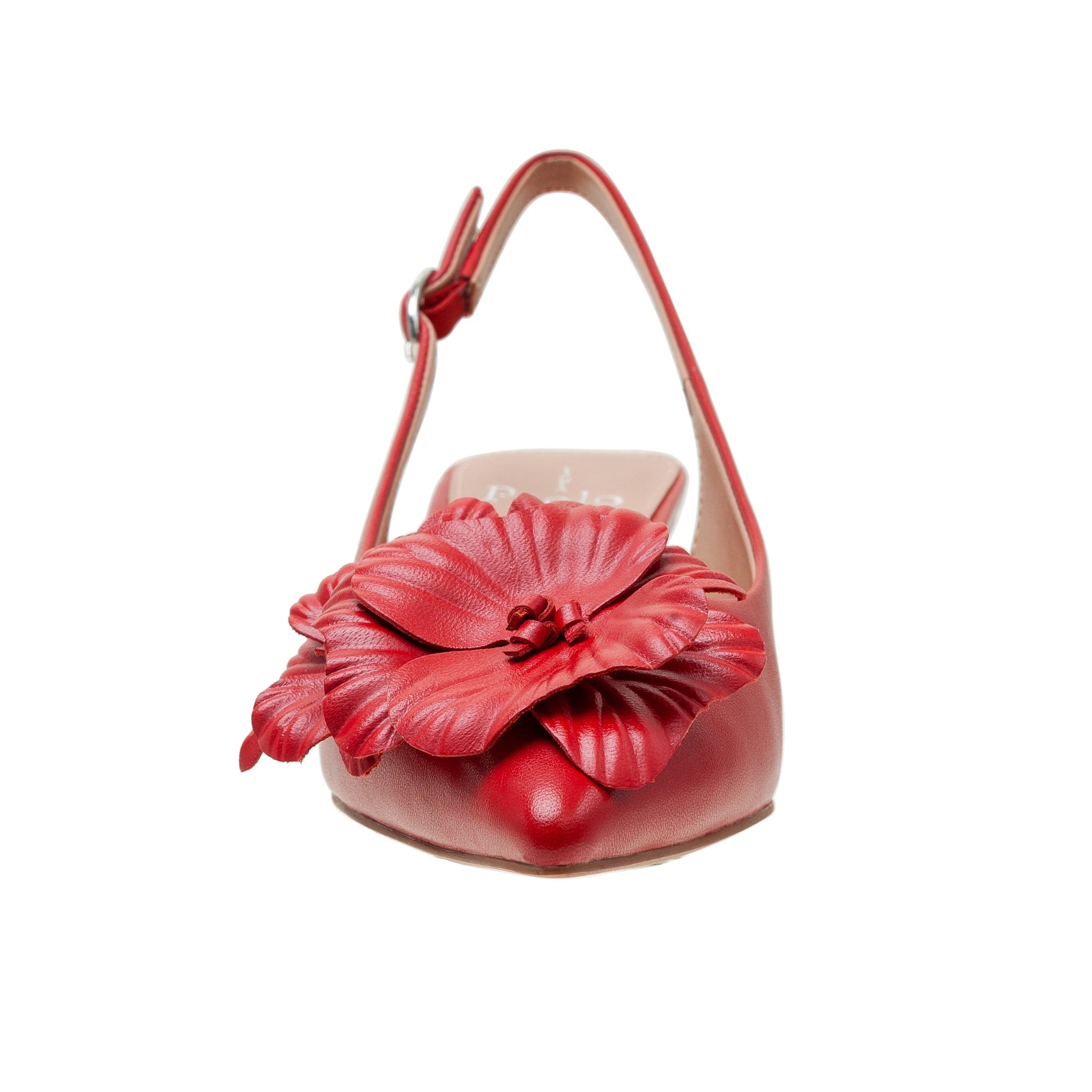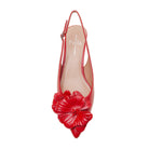 Delicate Pointy Toe Low Kitten Heel Slingback Pumps With Romantic Floral Ornament