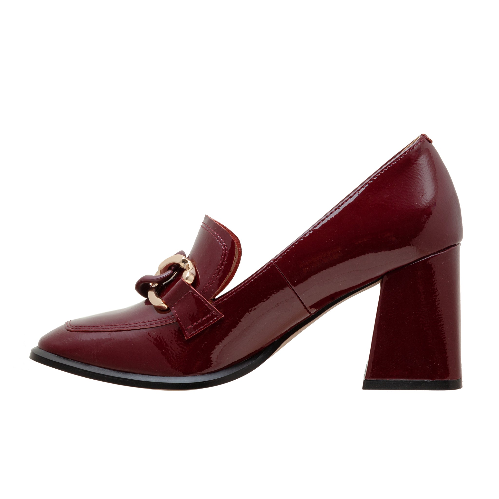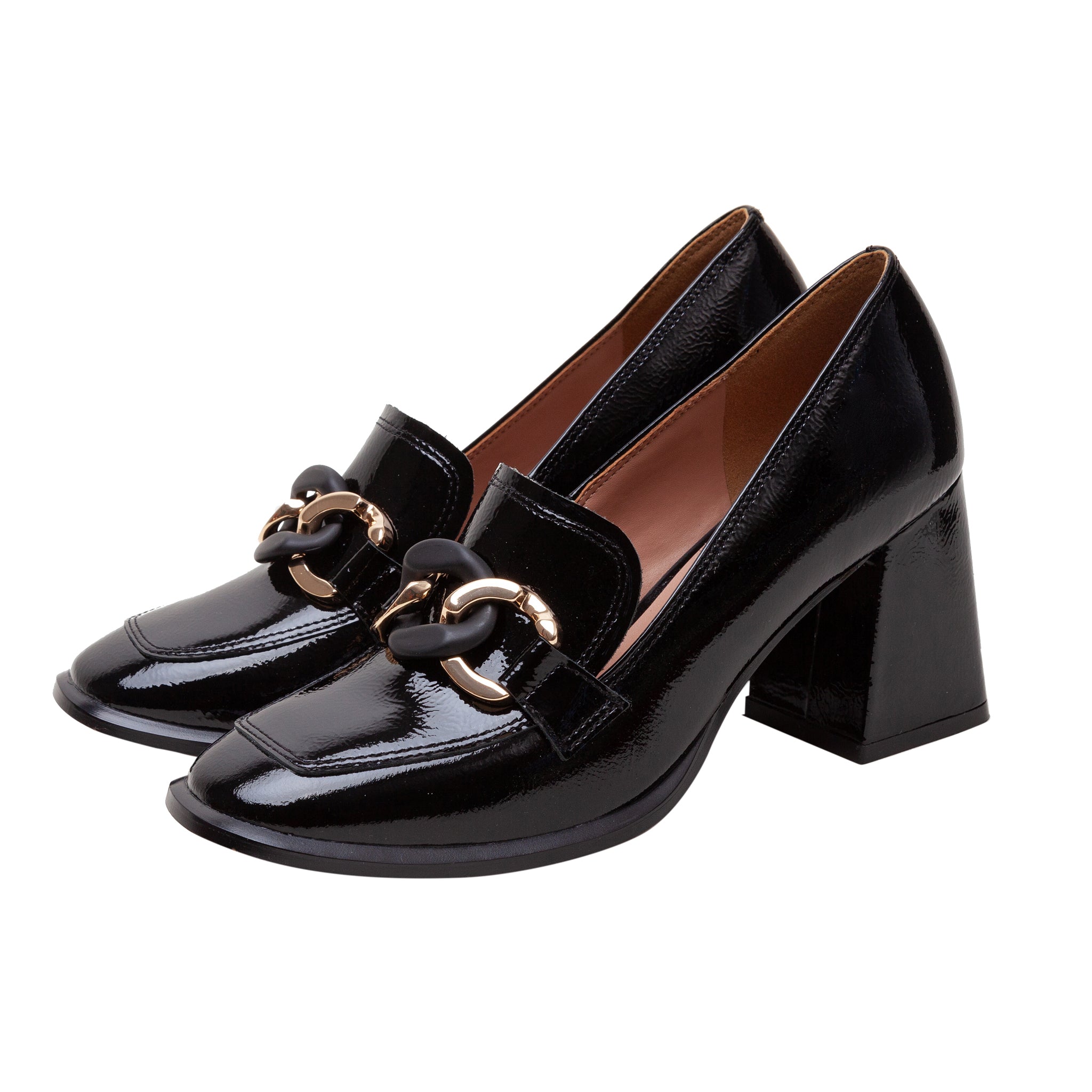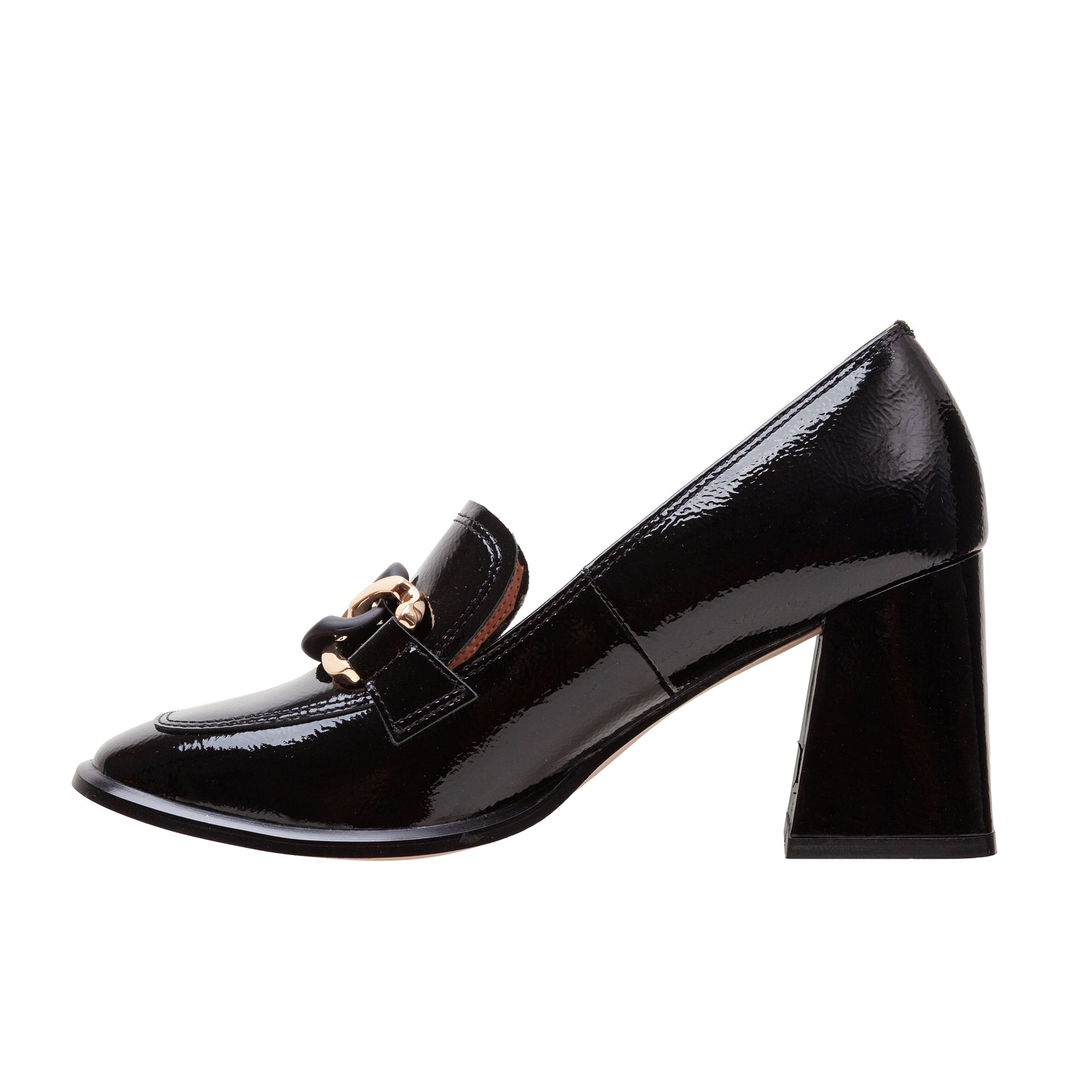CECE | High Block Heel Patent Leather Apron Toe Loafers