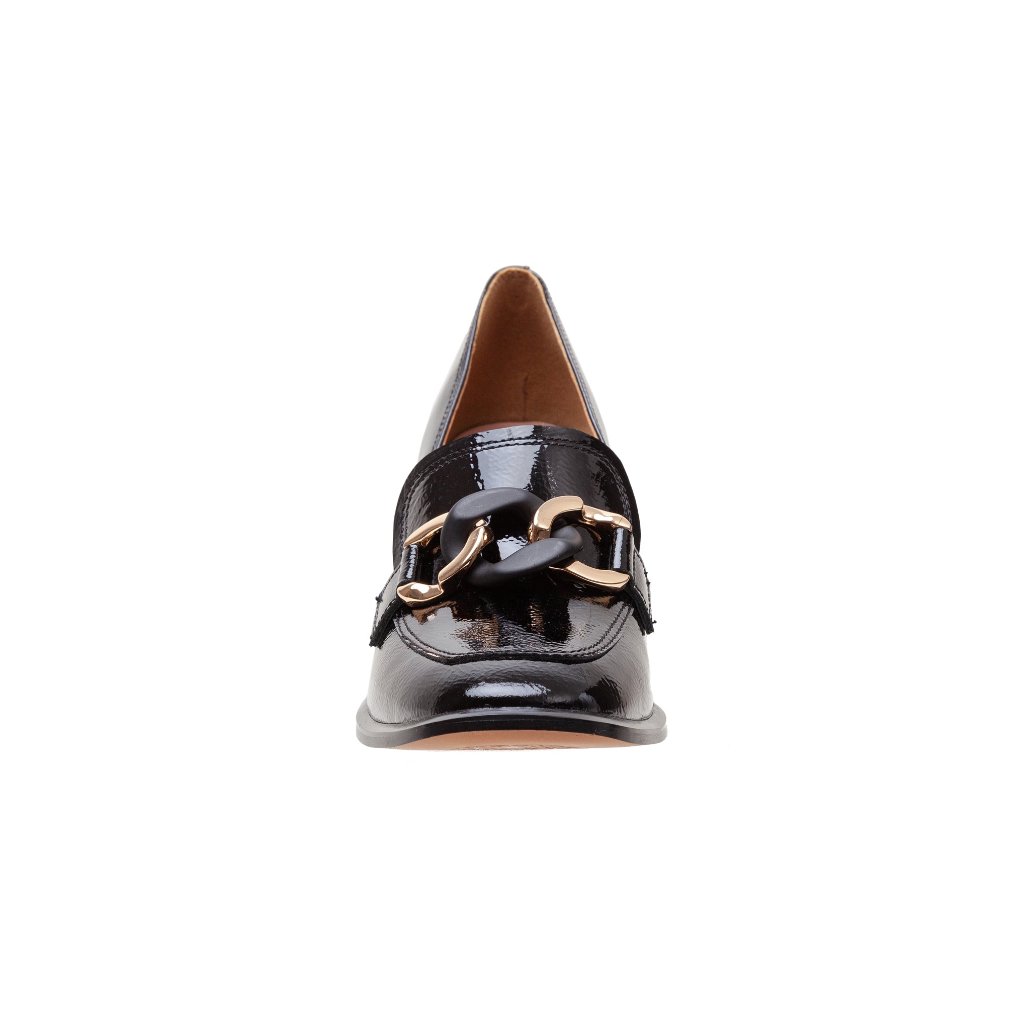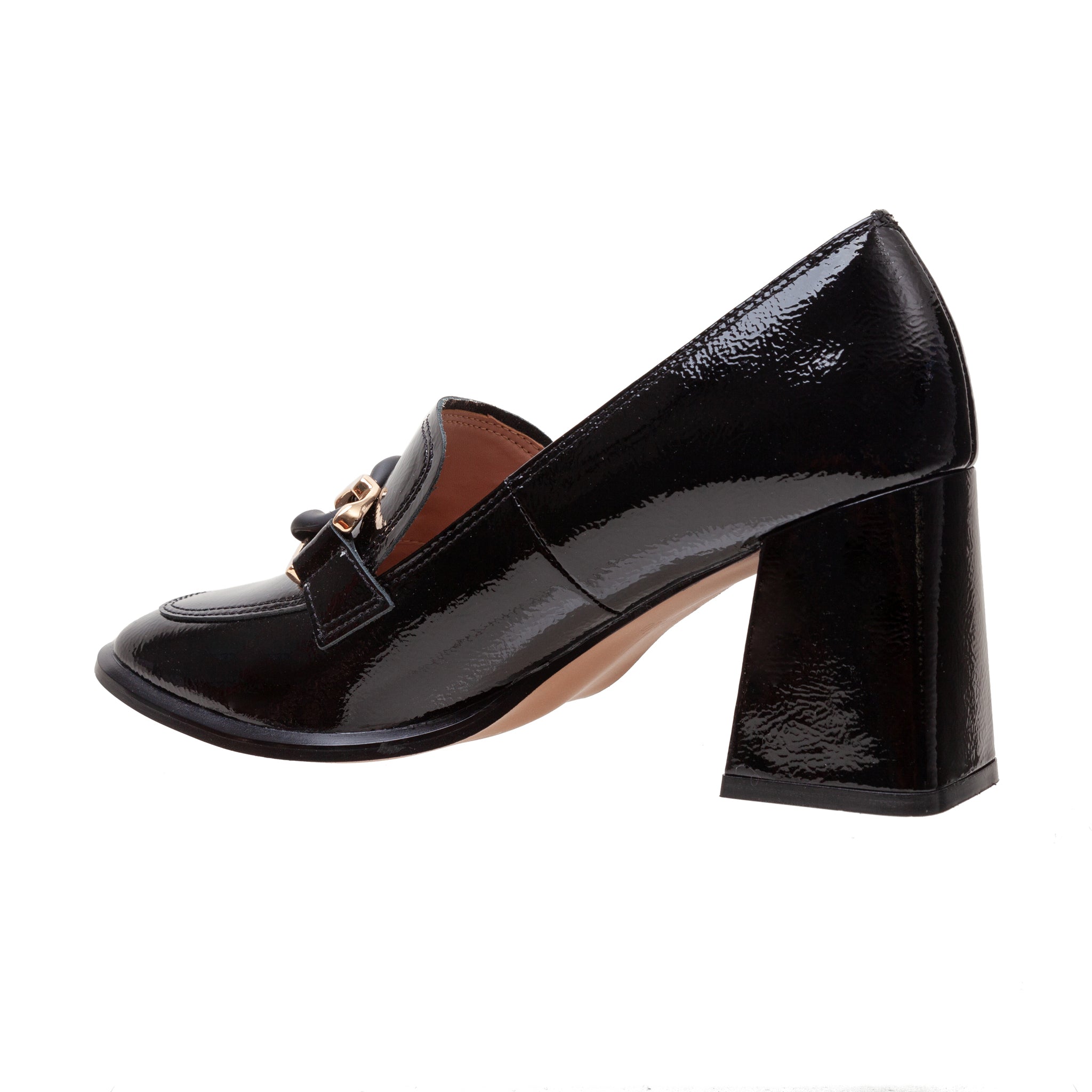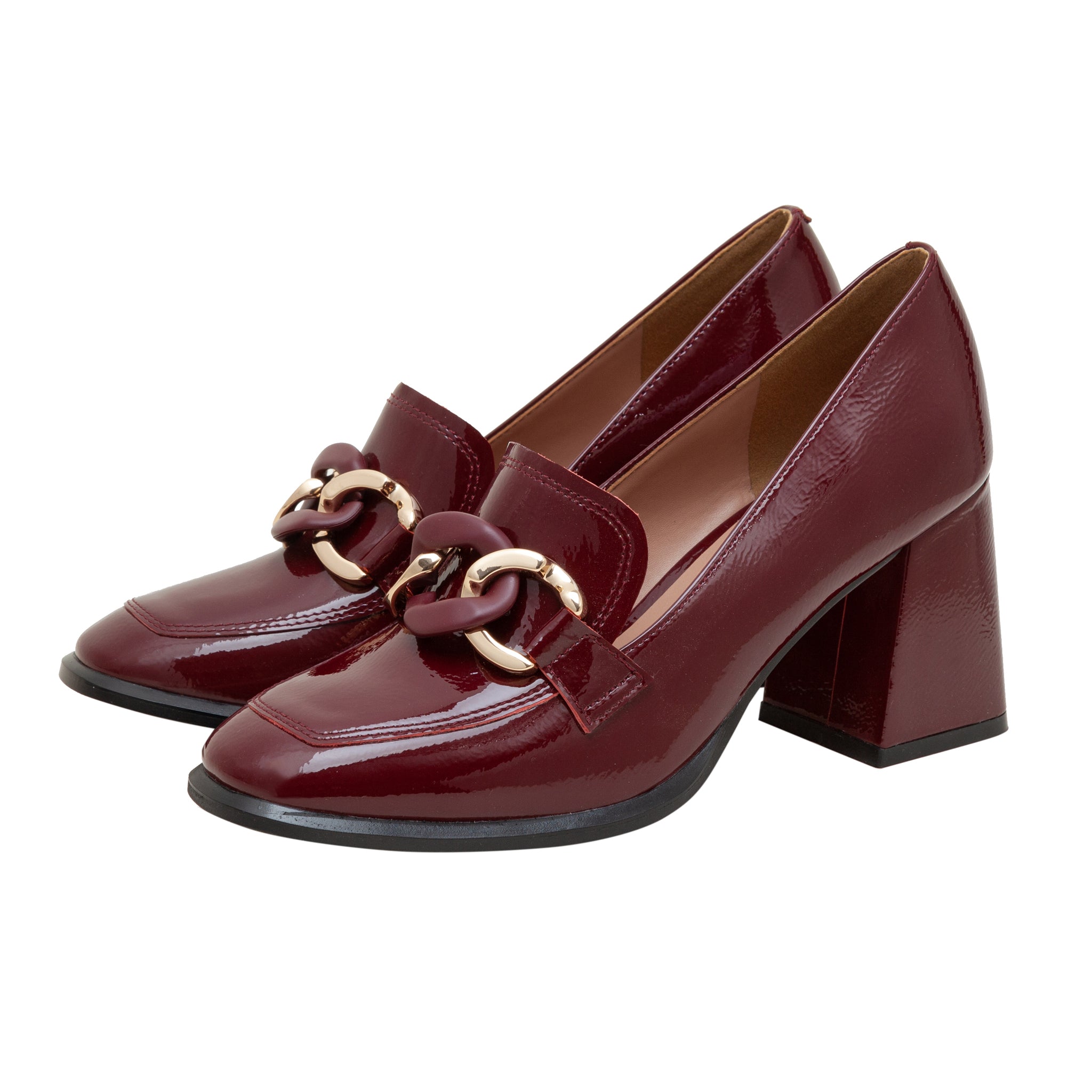 CECE | High Block Heel Patent Leather Apron Toe Loafers
