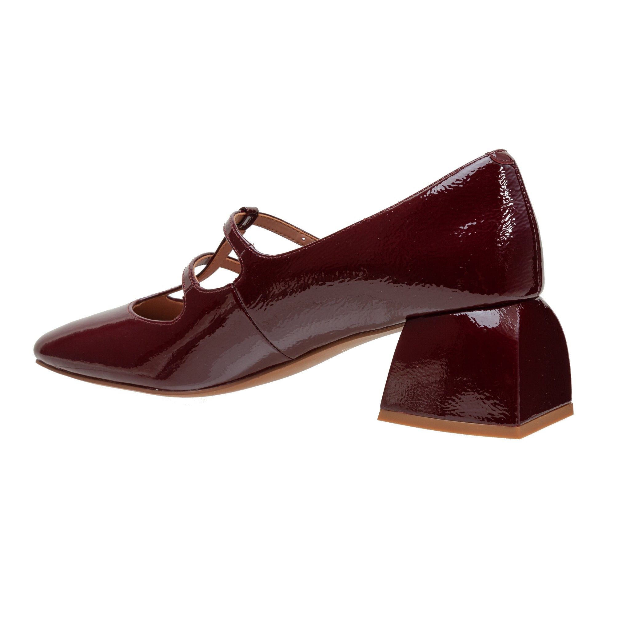 Double T-Strap Square Toe Mary Jane Pumps Featuring A Modern Mid-Height Flared Block Heel And Done-Up In Patent Leather For Extra Shine