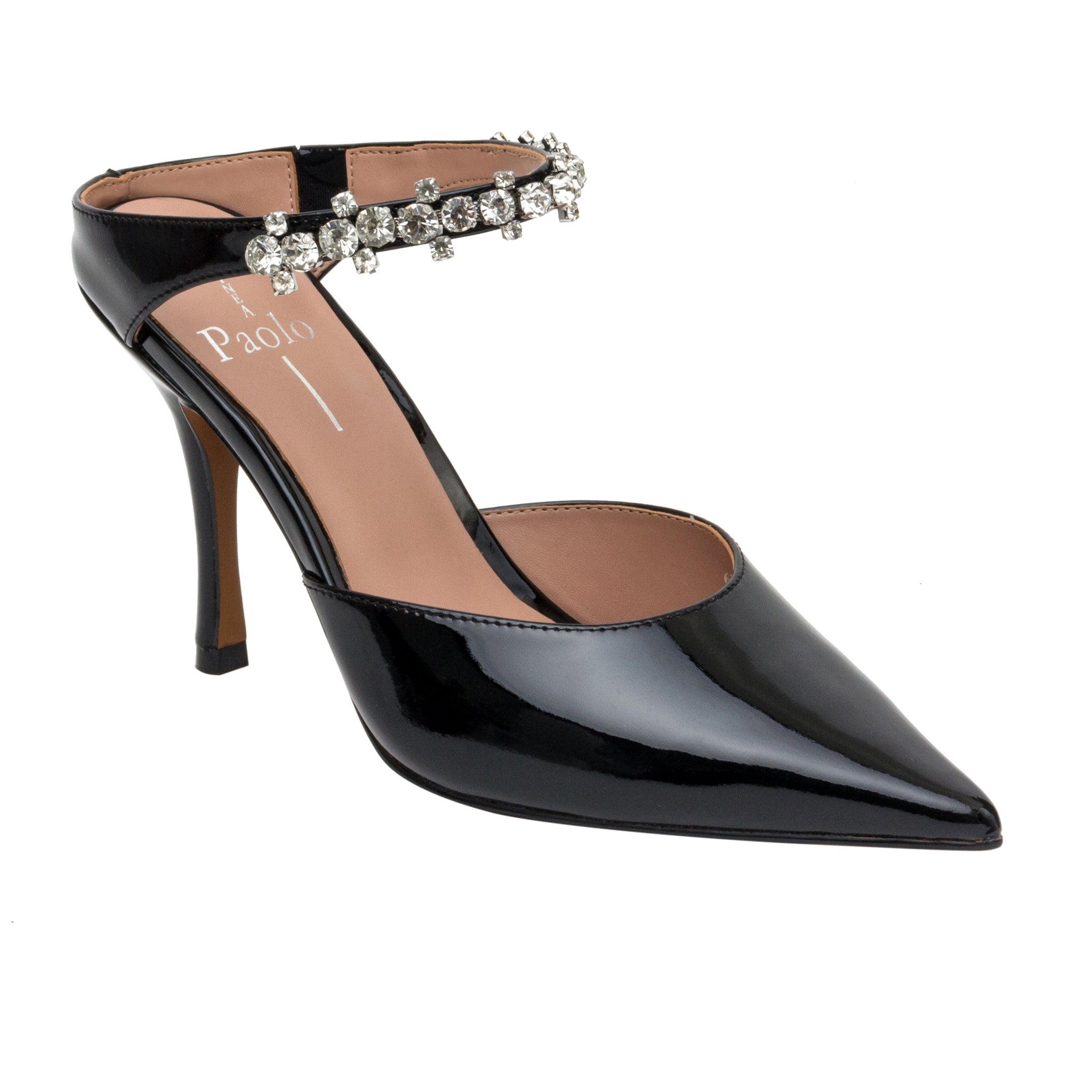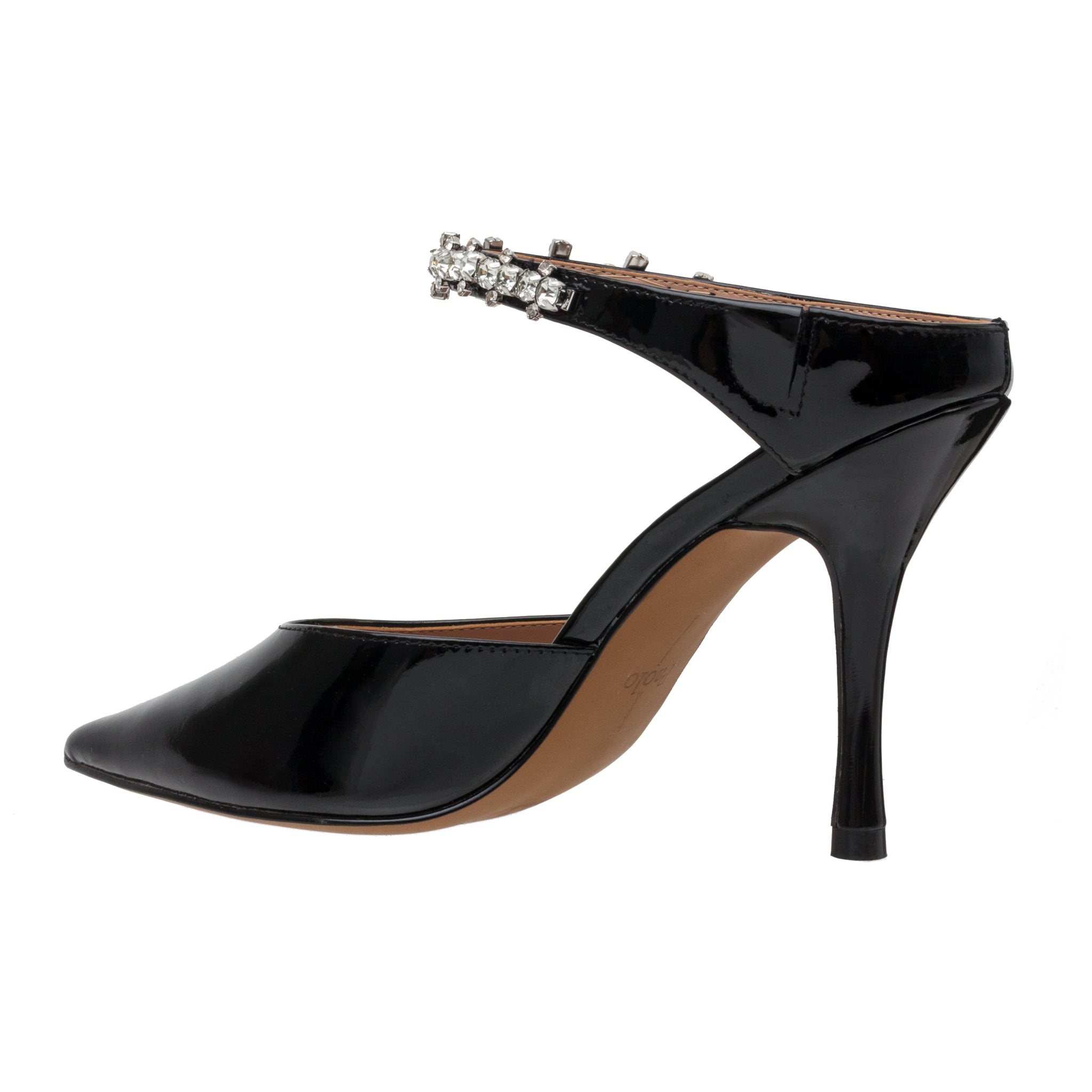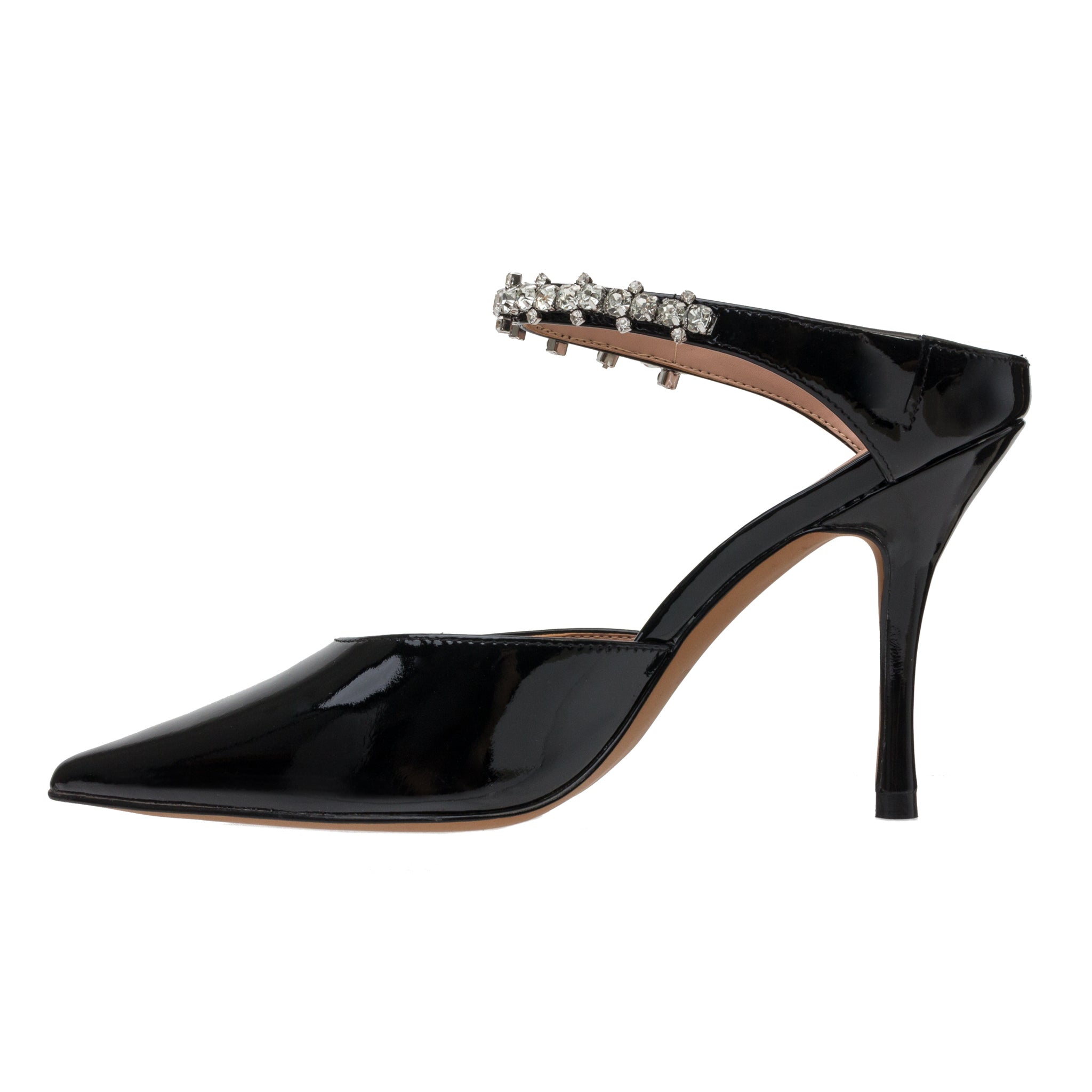 Meet YNEZ | A Crystal Embellished Slip-On High Heel Party Shoe Done Up In Sleek Patent